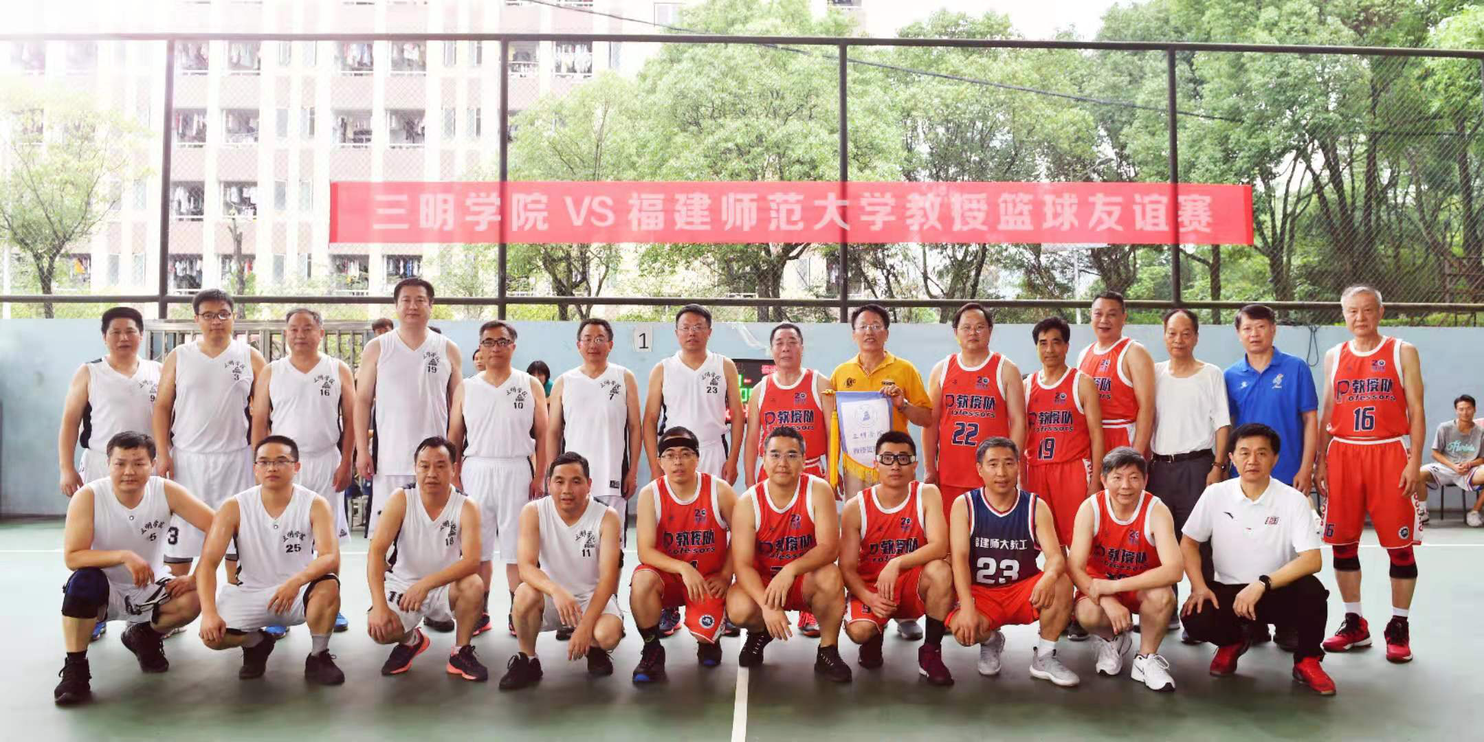 5月20日-22日,受三明学院等单位邀请,我校教授篮球队在领队、原副校长郑一书和队长、社会历史学院林国平教授带领下,赴三明市交流学习。球队先后与三明学院教授篮球队、宁化县教育系统篮球队进行了两场精彩激烈的友谊赛,通过比赛展现了球队风采、结下了深厚友谊、扩大了社会影响、取得了良好效果。