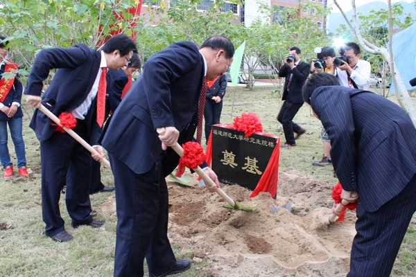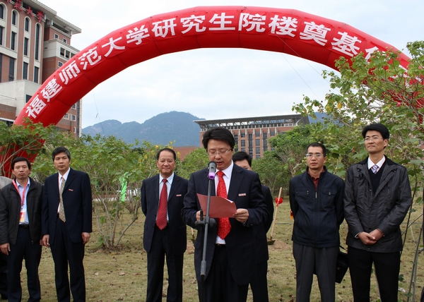 11月17日下午,我校研究生院大楼奠基仪式在旗山校区举行。校领导罗萤、黄汉升、王建南、许明,福州大学、福建农林大学、福建医科大学、福建中医药大学等研究生处负责同志,我校有关职能部门、各学院分管研究生工作负责同志,师生代表参加了本次奠基仪式。奠基仪式由许明副校长主持。