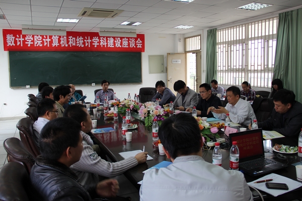 梅宏院士和郭建华教授与数学与计算机科学学院负责人、教授以及部分青年教师代表等举行了交流座谈会,对我校计算机和统计学科的建设与发展提出了许多宝贵的意见和建议。