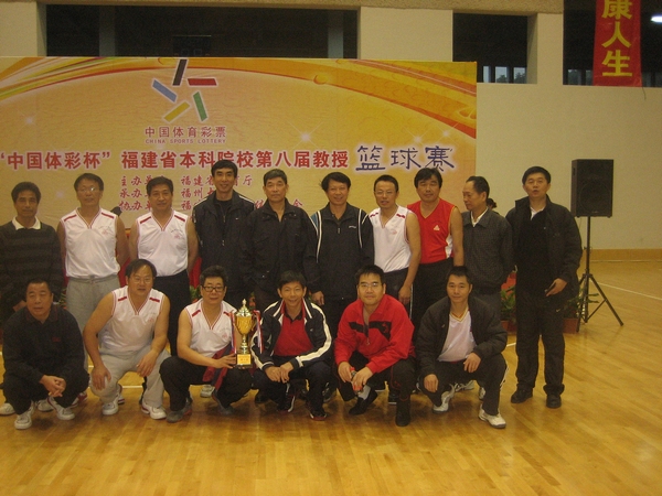 11月30日至12月2日,由福建省教育厅主办的2012年“中国体彩杯”福建省本科院校第八届教授篮球赛在福州大学举行。我校教授篮球队员们齐心协力,顽强拼搏,荣膺冠军,福州大学、集美大学分别获得第二、三名。此前教授篮球队还参加了在印尼雅加达举行的第28届全球华人篮球邀请赛男子中年组(M55,1957年后出生)的比赛。