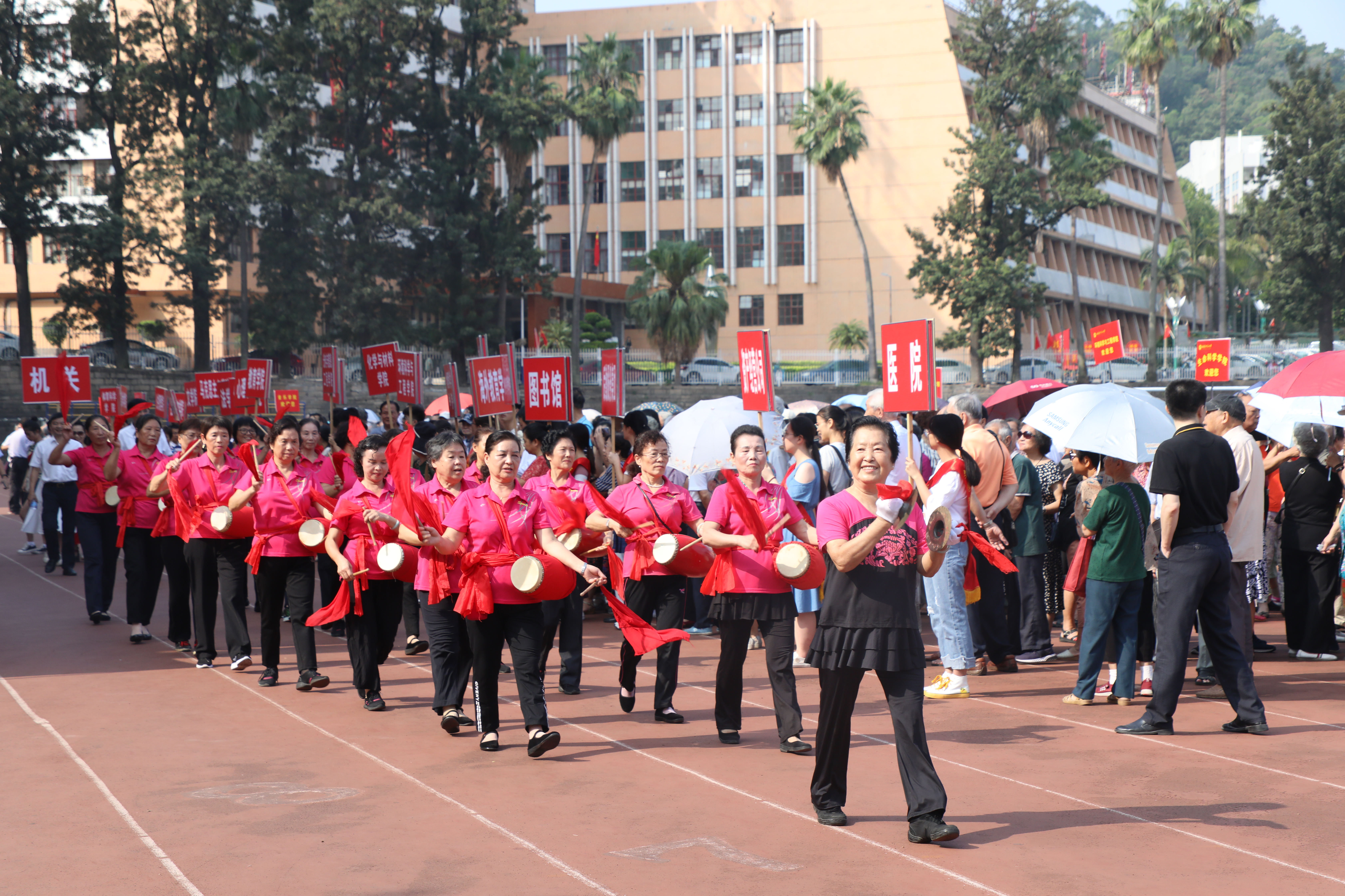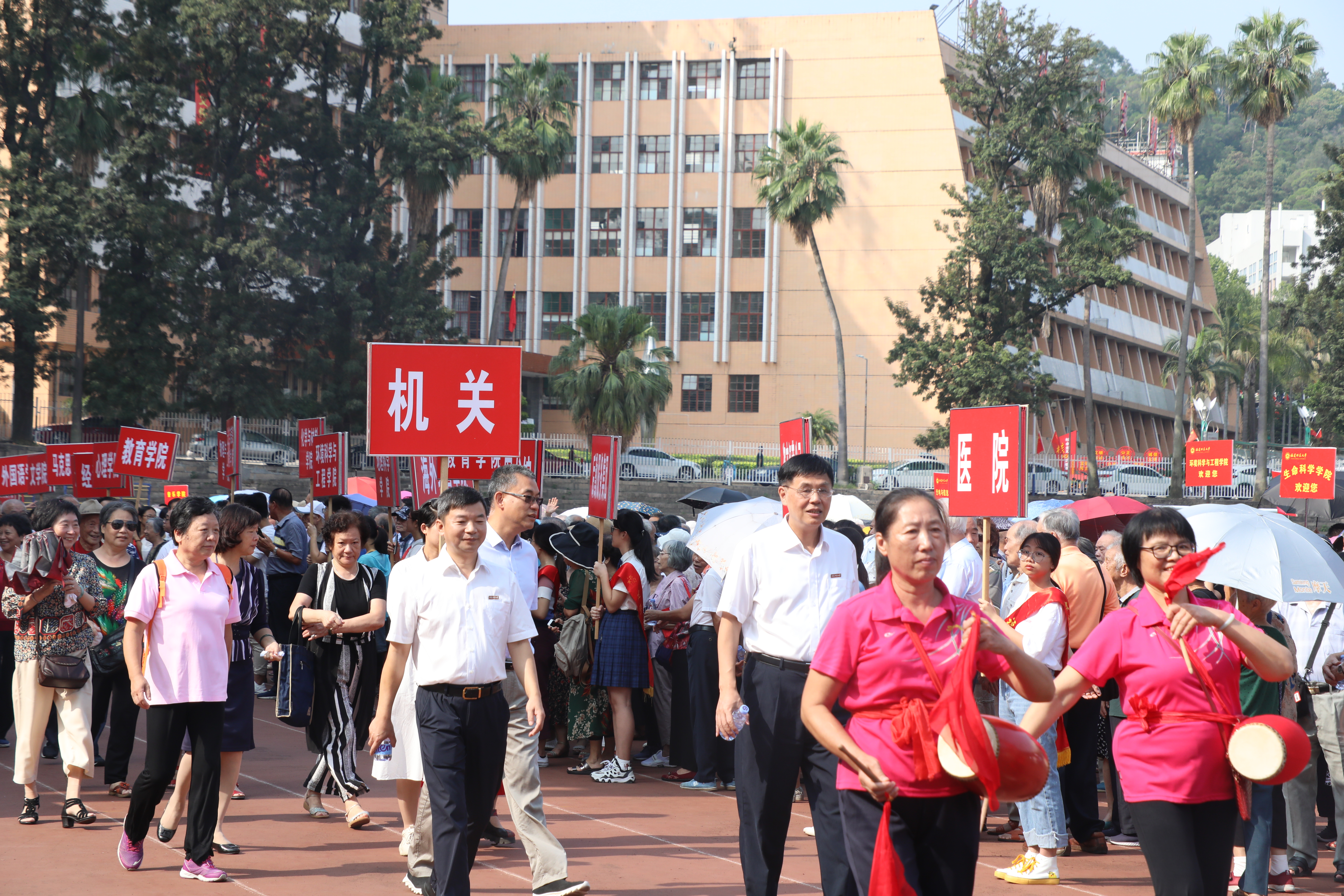 活动于10月11日上午在仓山校区田径场举行。校领导李宝银、叶燊,校离退休工作领导小组成员、各单位离退休工作领导小组组长、离休干部党总支、校退休教职工协会、校关工委、校老年大学和各老年社团班子成员,各离退休教职工党支部支委成员,各离退休教职工民主党派负责人,学校办公室、宣传部、离退休干部工作处、保卫处、校医院等单位负责人共1200多人参加了活动。活动由校党委副书记叶燊主持。