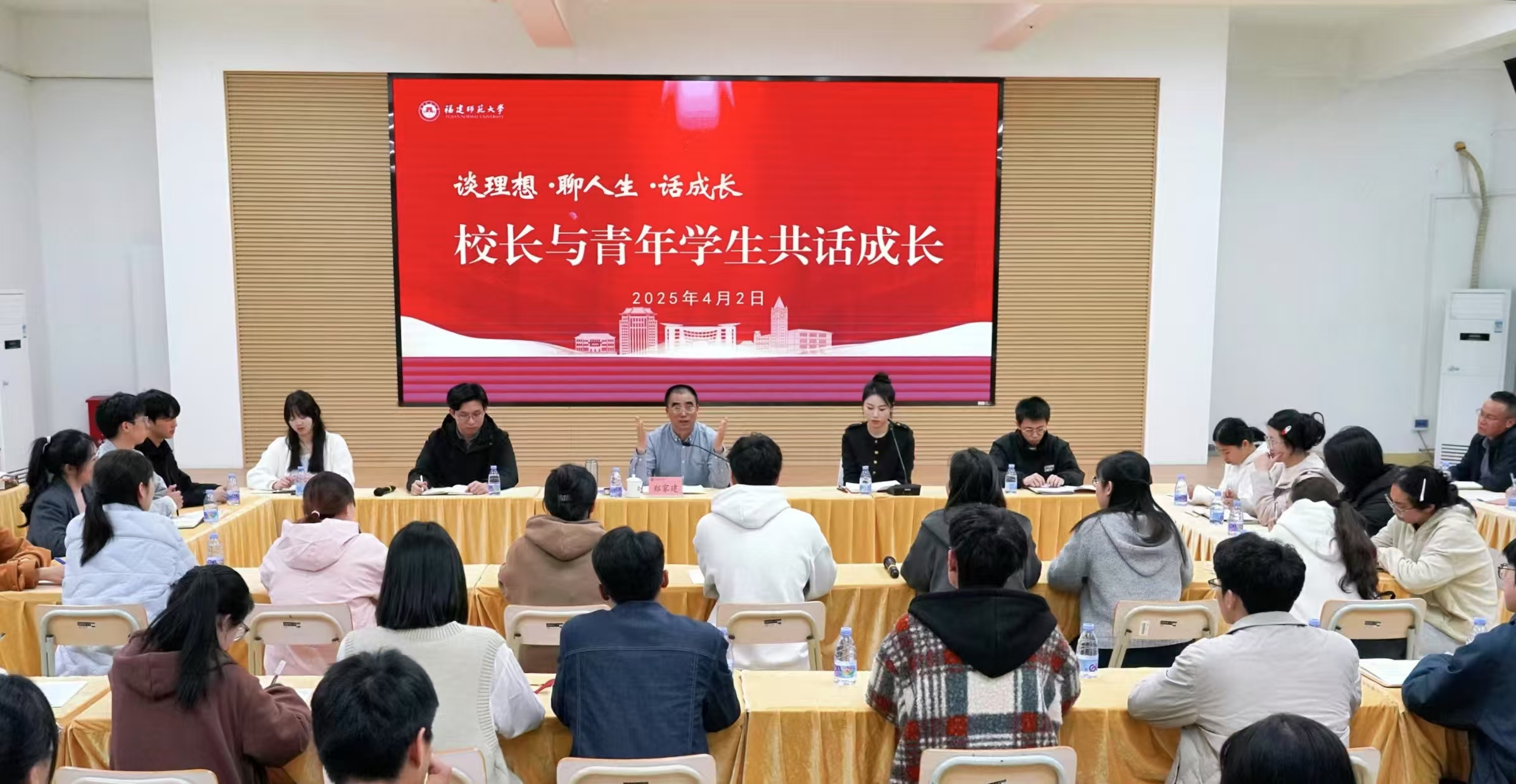 4月2日,校长郑家建教授在旗山校区百草园三楼“一站式”学生社区与青年学生交流座谈并讲授思政课。
