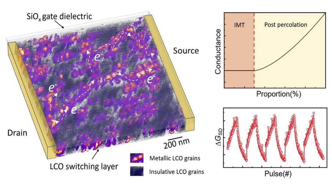 近日,我校黄志高教授课题组开发了一种基于钴酸锂(LCO)沟道层MIT的三端非易失性突触晶体管,实现了线性和重复性好、能耗低的新型器件。