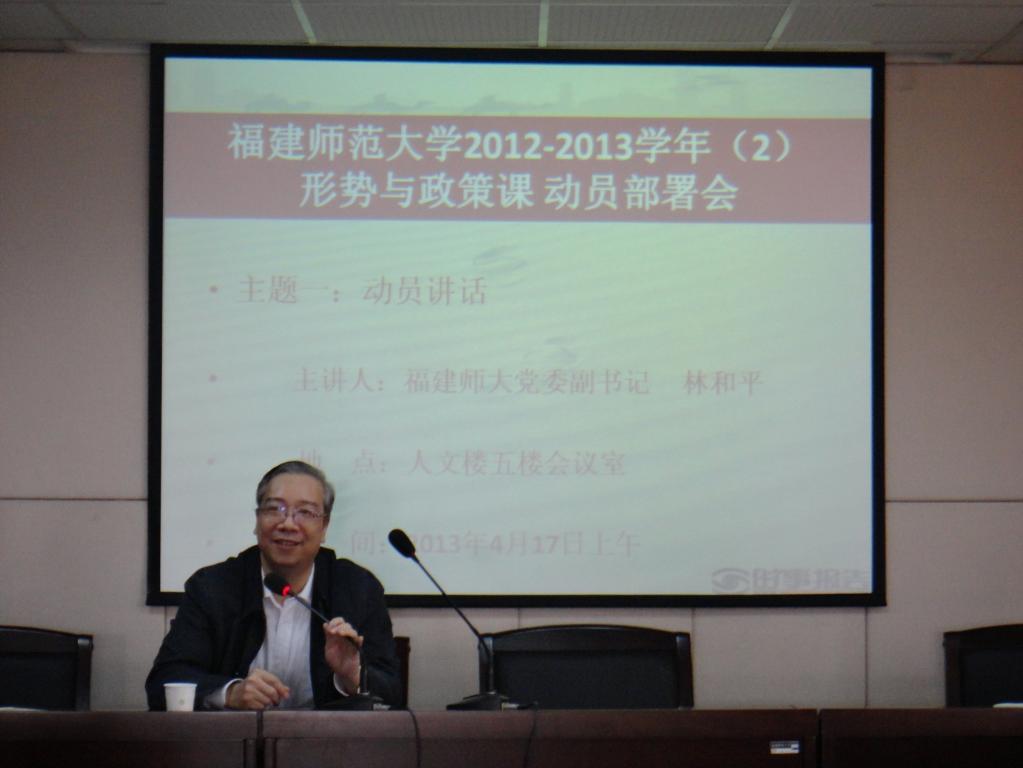 部署会于4月17日上午在马克思主义学院会议室举行。校党委副书记林和平,宣传部有关负责同志,马克思主义学院形势与政策课领导小组成员,全体形势与政策课任课教师参加了会议。