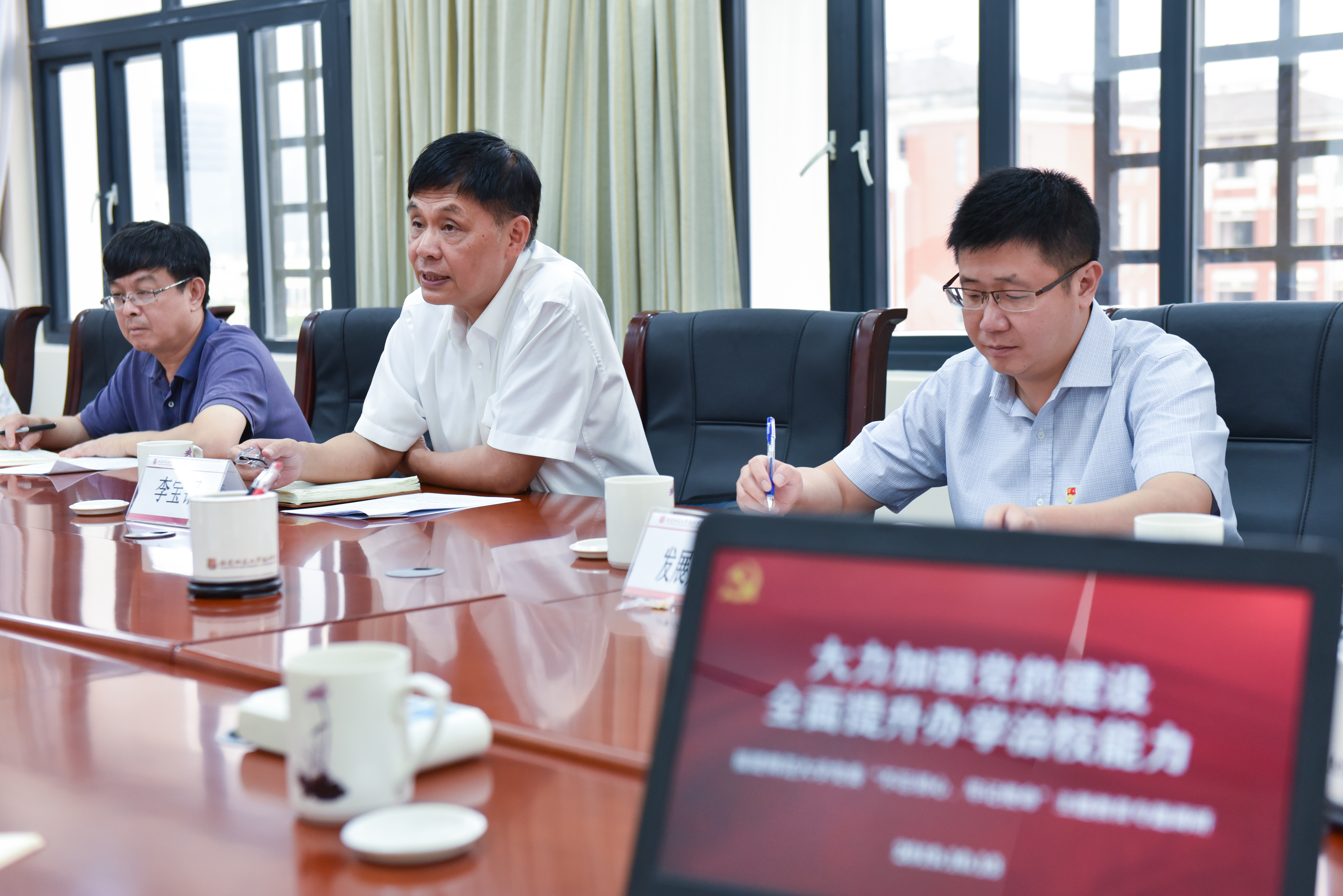 校党委书记李宝银带领学校办公室、组织部、宣传部、教师工作部(处)、发展规划处等单位负责人,围绕“大力加强党的建设,全面提升办学治校能力”主题,深入马克思主义学院、教育学部、体育科学学院、协和学院开展调研。调研组重点听取了学院(部)主题教育开展情况,以及学院(部)发展面临的困难、创新发展工作举措和需要学校帮助解决问题的汇报。在调研中,李宝银强调,要切实把主题教育同学院(部)发展紧密结合起来,创新发展思路,破解发展难题;要保持发展定力,不断深化内涵建设,提高办学水平;有关职能部门要高度重视学院(部)提出的困难和问题,深入研究分析,切实推动解决。副校长郑家建参加了教育学部、体育科学学院的调研。此外,李宝银还带领有关部门负责人前往南平市建阳区、浦城县开展调研。