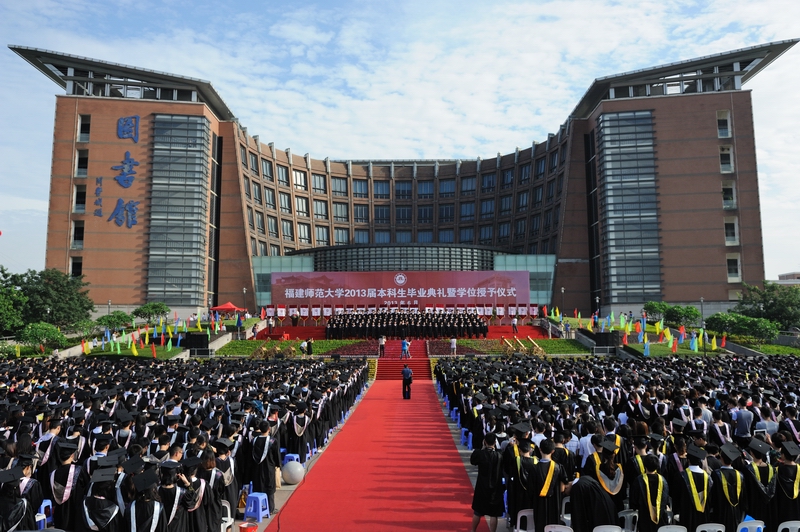 仪式于6月26日上午在旗山校区图书馆前广场举行。校领导罗萤、黄汉升、林和平、王建南、许歌平、李敏、许明、凌启淡、王长平,校长助理郭警修,有关部门负责人,各学院党政领导、毕业班辅导员,师生代表,全体2013届本科毕业生,部分毕业生家长等共四千多人参加了仪式。典礼仪式由校党委副书记林和平主持。