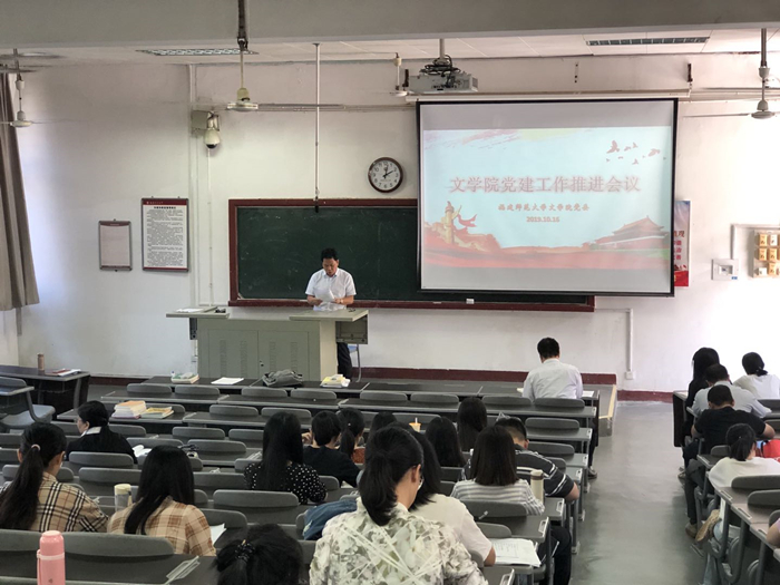 1016日下午,文学院在仓山校区文科楼104教室召开“学院党建工作推进会议”,院党委书记李建华、院党委副书记李彬源、组织员郭静虹和学院全体党支部书记参加会议。大会由院党委书记李建华主持。