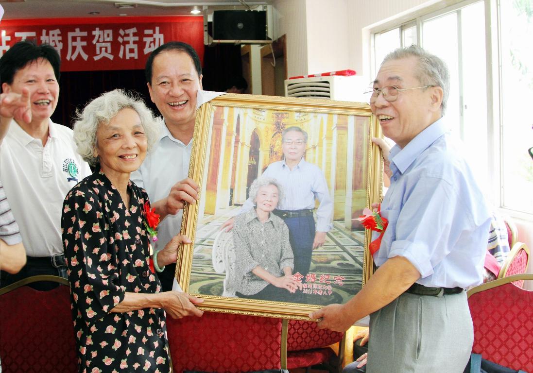 10月14日上午,我校第十三届金婚、钻石婚庆贺活动在吕振万楼举行。校党委书记罗萤、纪委书记许歌平,28对金婚、钻石婚、白金婚夫妇,离退休干部工作处全体人员,各有关单位负责同志及经办人参加了活动。罗萤代表学校致贺辞。许歌平宣读了金婚、钻石婚、白金婚夫妇名榜。校领导向每对金婚、钻石婚、白金婚夫妇赠送了花篮和婚纱合照,并与他们合影留念。