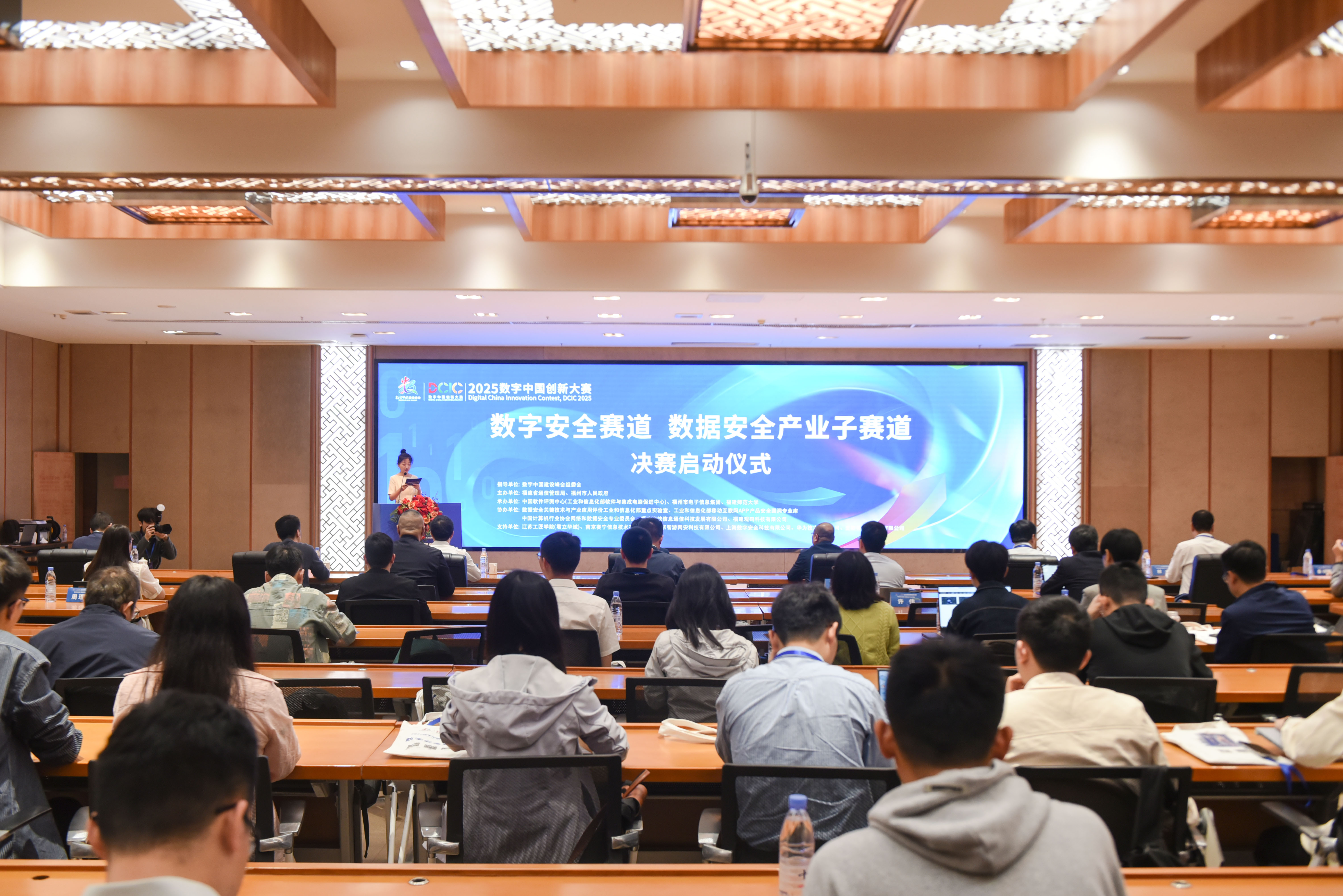 大赛于4月14日在我校正式启动,由数字中国建设峰会组委会指导,省通信管理局、福州市人民政府主办,我校和福州市电子信息集团、中国软件评测中心共同承办。省通信管理局副局长张国旗,副校长吴剑锋出席决赛启动仪式并致辞。省通信管理局网络安全管理处处长陈庸程,数字福州集团副总经理林亭,福州市电子信息集团有限公司党总支书记、董事何杰,中国软件评测中心安全事业部副主任秦晓磊,省海峡信息通信科技发展有限公司总经理陈建华以及我校计算机与网络空间安全学院相关负责人、师生代表参加启动仪式。
