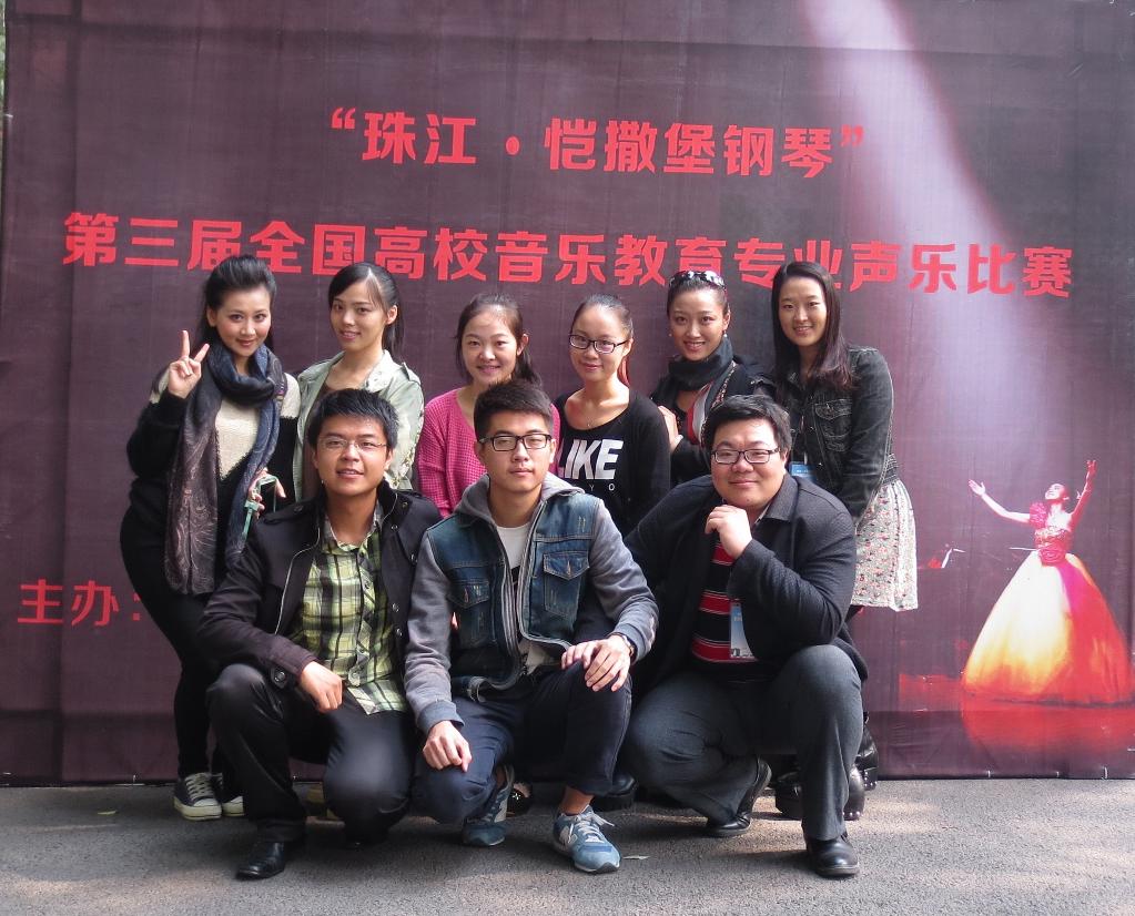 10月19日--25日,由中国教育学会主办,中国教育学会音乐教育分会、西南大学承办的第三届全国高校音乐教育专业声乐比赛在重庆市举行。经过初赛、复赛、决赛共16场比赛的激烈角逐,我校音乐学院参赛师生脱颖而出,取得优异成绩。其中,陈协耀同学(2011级音乐学师范专业)获本科美声组一等奖,谢军同学(2011级音乐学基地班)获本科民族组一等奖,王刚同学(2011级硕士研究生)获研究生美声组一等奖,冯葚蓝同学(2010级音乐学师范专业)获本科民族组三等奖,张方同学(2013级硕士研究生)获研究生民族组三等奖。王婷老师获教师民族组三等奖,林希老师获优秀指导教师奖,林翔(2012级硕士研究生)获优秀伴奏奖。