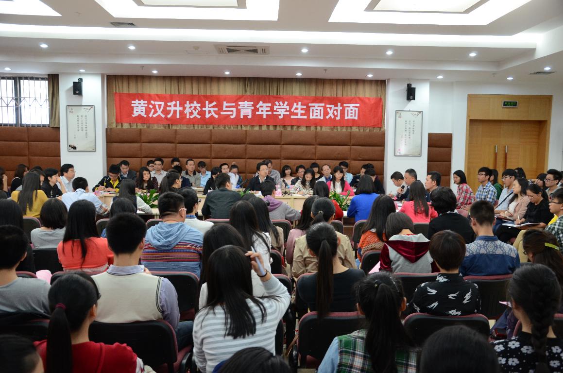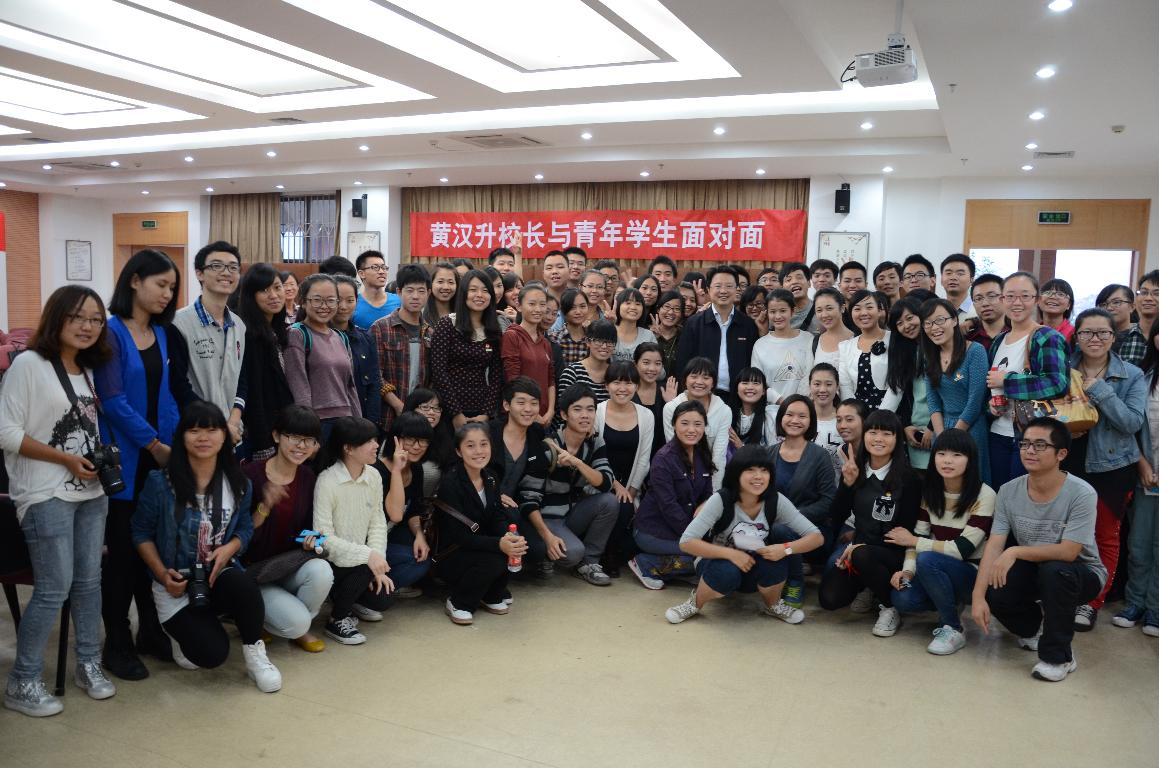 由校学生会主办的第四期“黄汉升校长与青年学生面对面”活动于11月6日在旗山校区举行。黄汉升校长带领学校办公室、宣传部、学工部、研工部、保卫处、校团委、教务处、国际合作与交流处、财务处、后勤管理处、后勤服务集团、基建处、图书馆、校医院、现代教育技术中心、体育科学学院等单位负责人,与从微博报名的同学中随机抽选的150名同学、40名提案人、各学院主要学生干部围坐在一起,共话校园事,共议学校发展。活动由校学生会主席毋郁东同学主持。