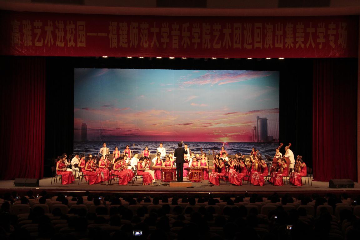 11月25日--26日,我校音乐学院艺术团“高雅艺术进校园”巡回演出走进厦门大学和集美大学。音乐学院200多名师生为两校2000多名观众献上了一场高雅音乐会。