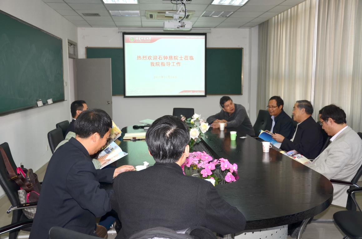 石钟慈院士听取了相关学科建设和发展、人才培养、创新团队建设等工作的汇报,对我校办学成绩和社会声誉给予充分肯定,并提出许多宝贵的建议。王长平副校长对石钟慈院士给予我校数学学科的关心和支持表示感谢。座谈会后,石钟慈院士还参观了我校老照片馆等。