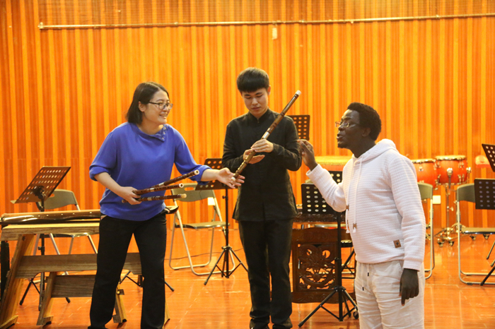 10月25日下午,音乐学院师生在我校演练厅,以“中国传统器乐文化”为题,为参加“科技部——生态环境遥感监测国际培训班”的伊朗、缅甸、菲律宾、埃及、尼日利亚、塞舌尔、波兰、乌干达、埃塞俄比亚等国家的技术人员讲授中国传统乐器。
