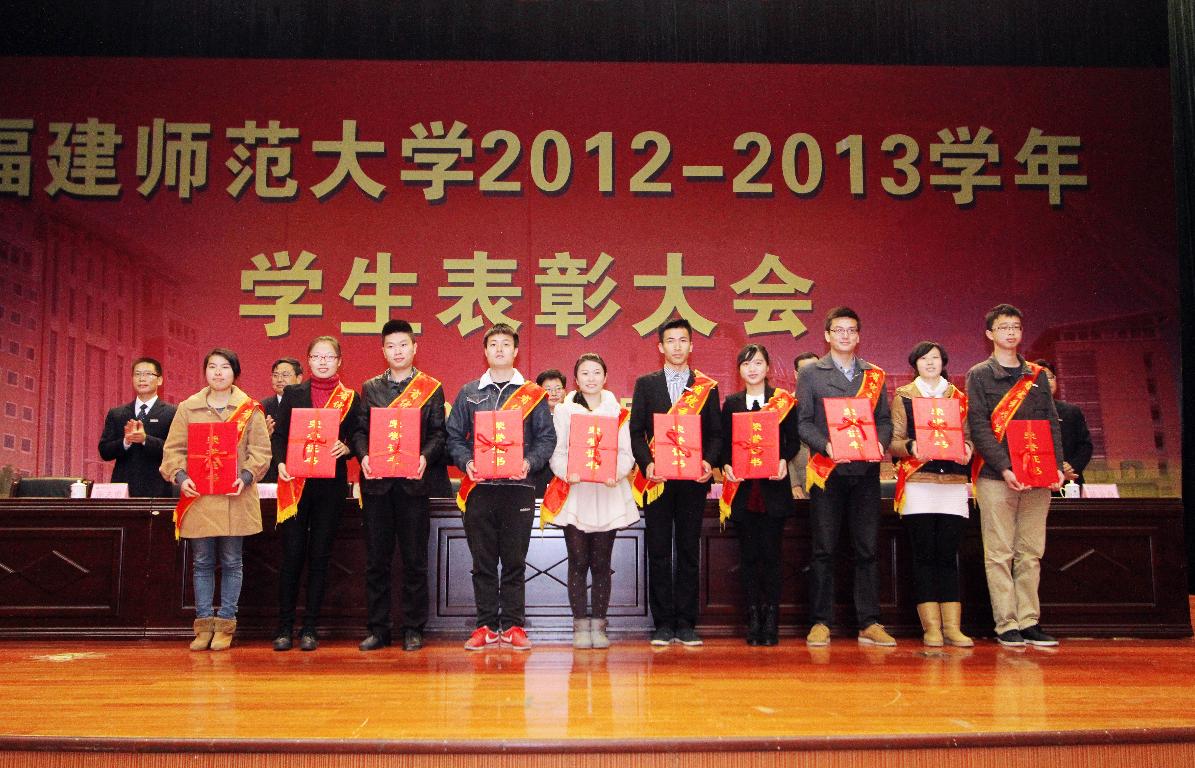 本次大会共表彰了47名国家奖学金获得者,5个福建省先进班集体、13名福建省优秀学生干部、18名福建省三好学生,41个校先进班集体、37个免监考班级、34名校三好学生标兵、889名校三好学生、973名校优秀学生干部、2名校长特别奖学金获得者、5334名校优秀学生奖学金获得者。