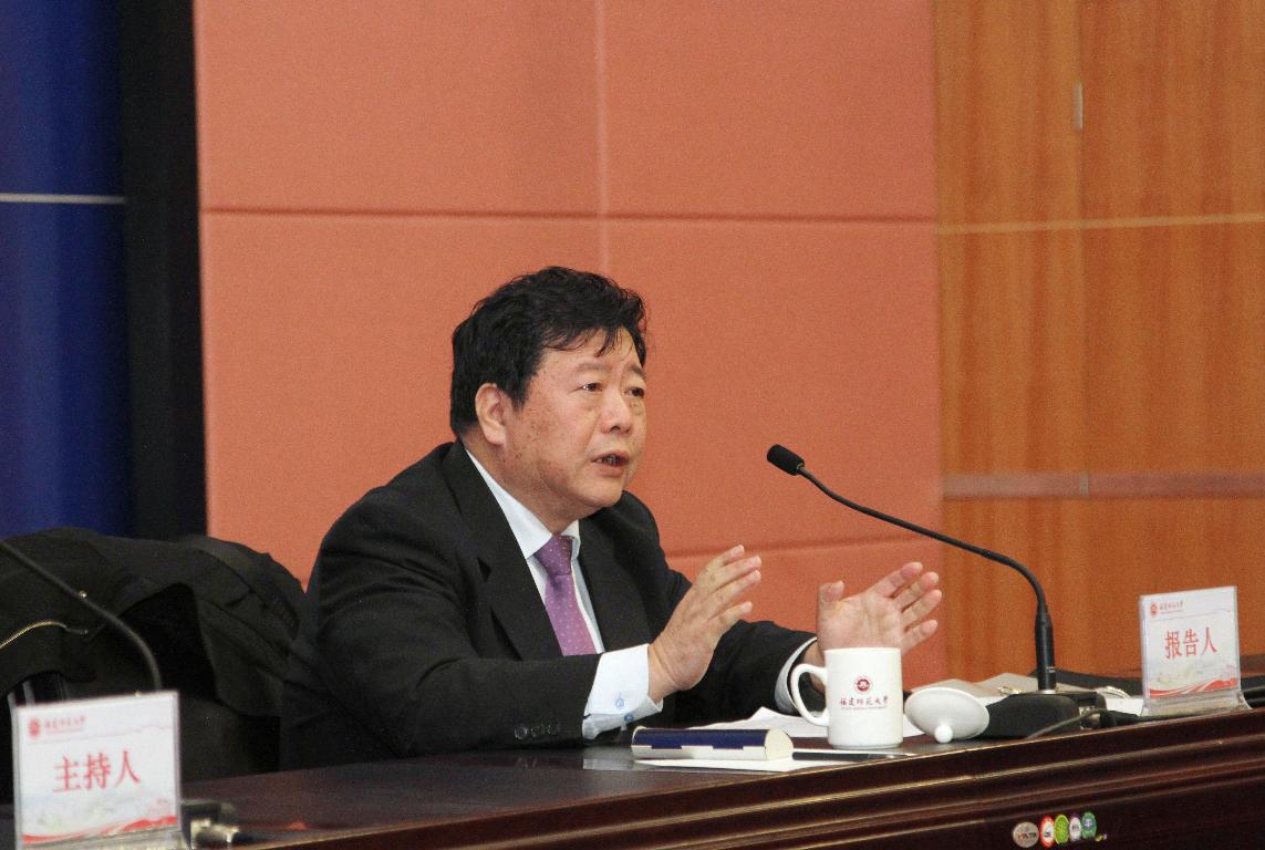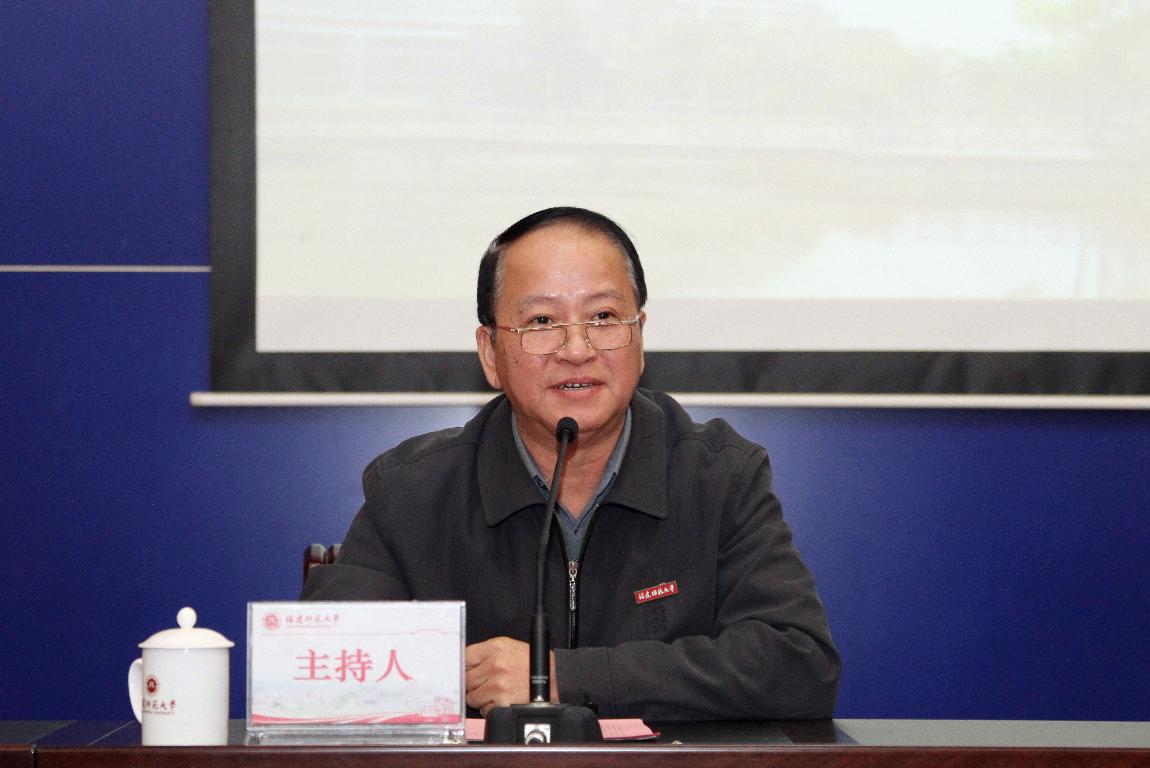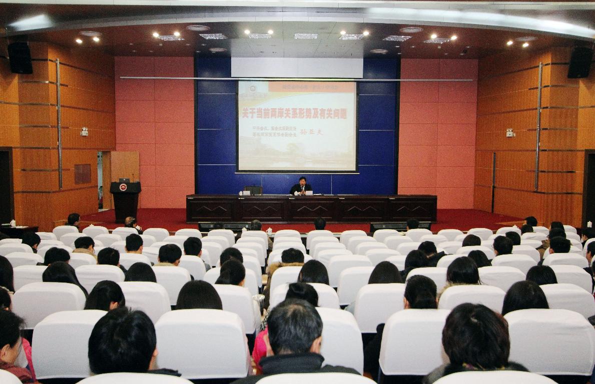 12月23日 ,我校在旗山校区学术大讲堂举行两级中心组(扩大)学习会,邀请中央台办、国台办原副主任,海峡两岸关系协会副会长孙亚夫作题为《关于当前两岸关系形势及有关问题》的专题报告。学习会由校党委书记罗萤主持。