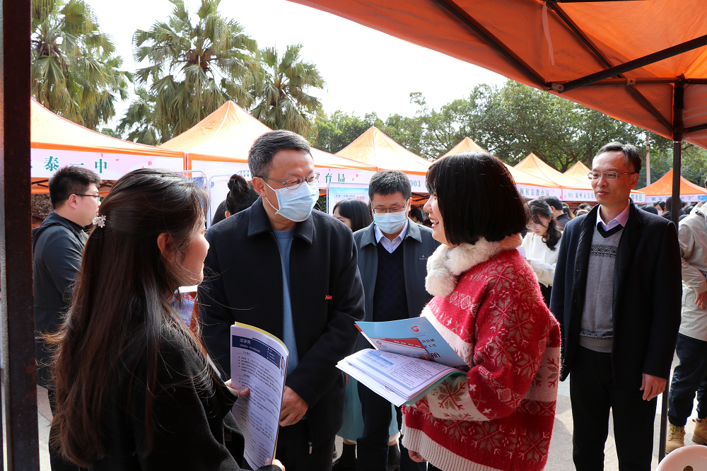 招聘会于3月4日在我校旗山校区图书馆前广场举办。校党委书记潘玉腾、副书记涂荣,党政办公室、学生工作部(处)、各学院分管学生工作负责人和毕业班辅导员以及2023届毕业生参会。