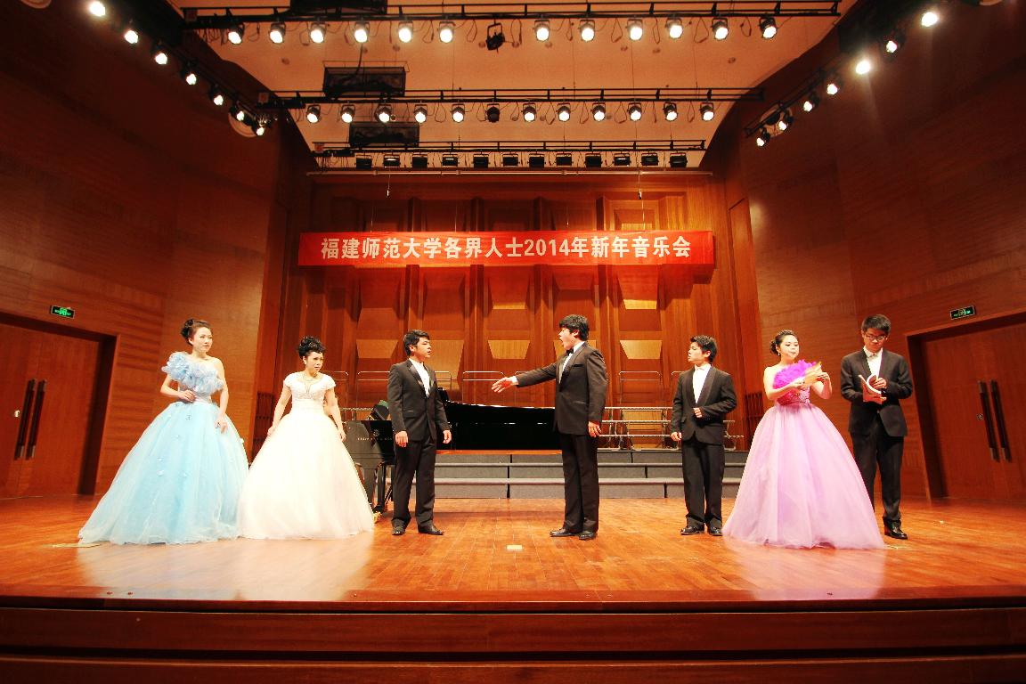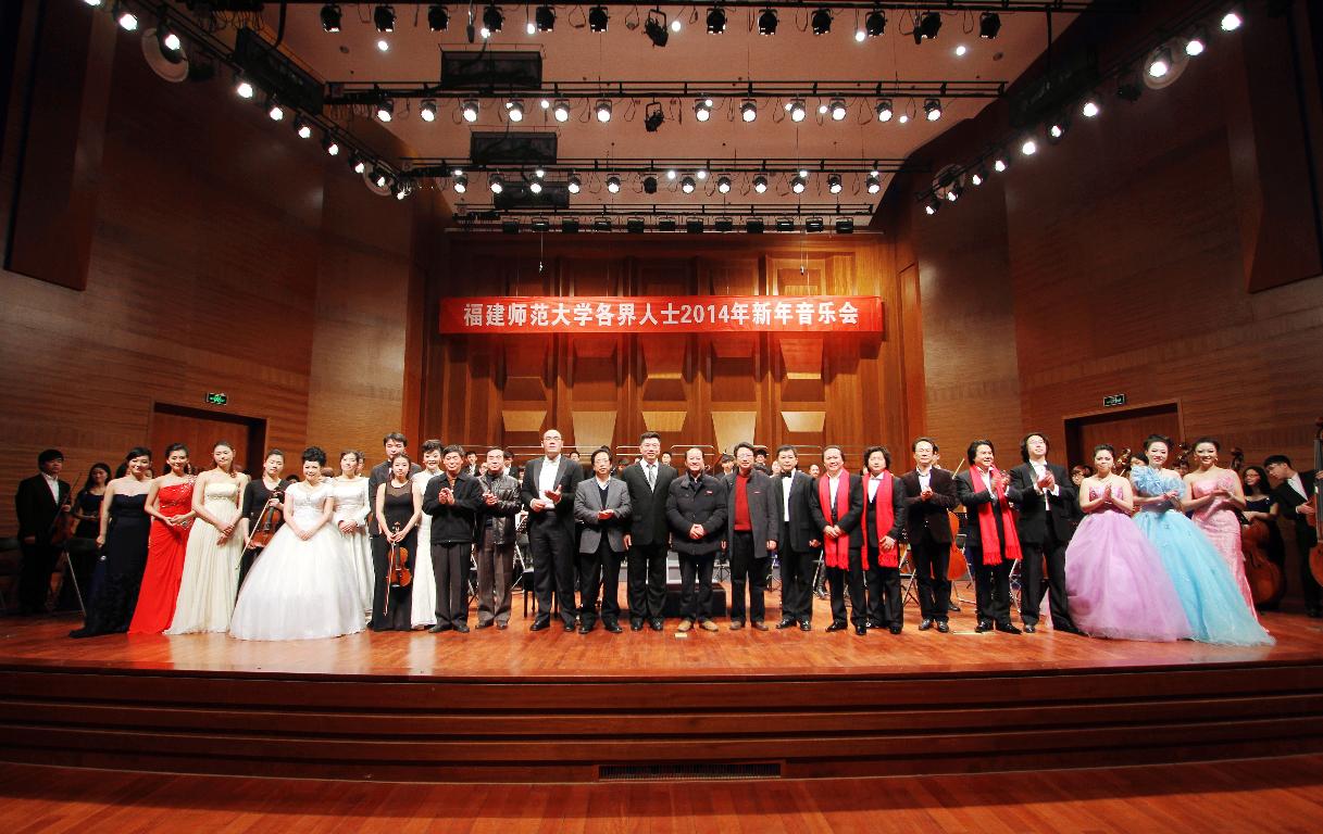 1月3日,我校各界人士2014年新年音乐会于在旗山校区音乐厅举行。省委统战部副部长李韧,省教科文卫体工会工委主任柳公立,民建省委专职副主委郭学军,民进省委专职副主委林思宁,九三学社省委专职副主委李子林,省工商联副主席李建南,省侨联副主席谢小建,省留学生同学会副会长兼秘书长郑瑜,福州市总工会直属工会主席尤山,我校领导,助理,原校领导,助理,各单位负责同志,专家学者,各民主党派、统战团体、无党派人士代表,校关工委、退休协会、老年大学负责人,工会、教代会负责同志,各部门工会主席,全体辅导员,校青年联合会、学生会、社团联合会负责人等500多人参加了音乐会。