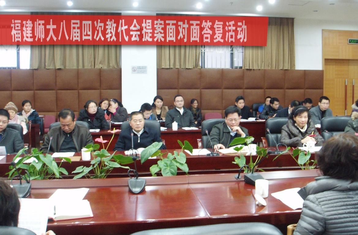 1月14日,校教代会执委会在旗山校区开展八届四次教代会提案面对面答复活动,50余位教代会代表和23个相关职能部门就教代会的部分提案进行现场沟通交流。活动分3组进行,校党委副书记王建南,纪委书记许歌平,副校长汪文顶、李敏、凌启淡分别参加了各自分管部门所在小组的答复活动。