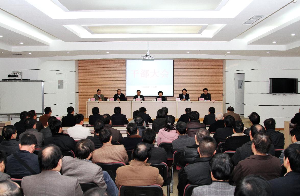 1月15日下午,我校召开领导干部任职宣布大会。省委常委、教育工委书记陈桦,省委组织部常务副部长袁毅,省委教育工委常务副书记、省教育厅党组书记、厅长鞠维强,省委教育工委副巡视员马玉良,校领导,全体中层正职干部(含主持工作的副职干部),附属单位党政主要负责人等参加了大会。会议由鞠维强主持。
