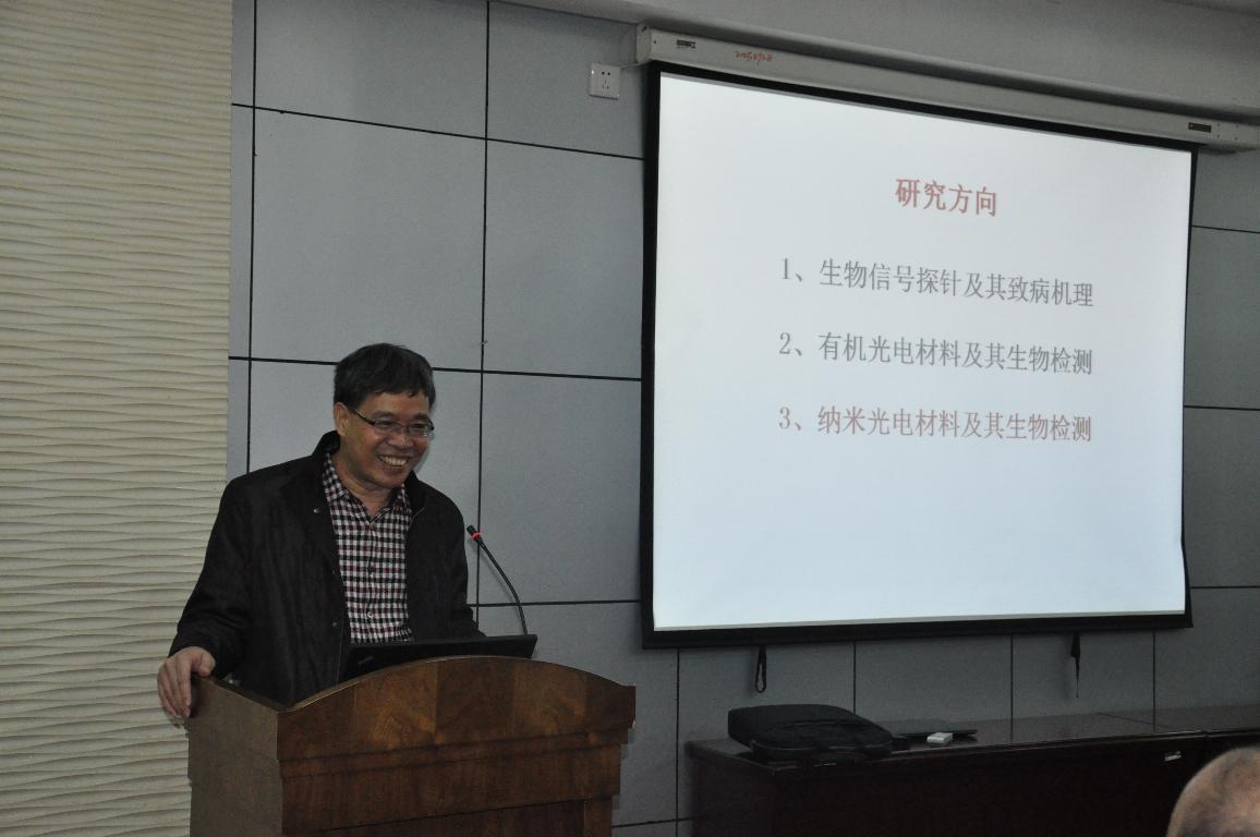 汪联辉教授从纳米光电材料及其生物检测入手,系统分析了新材料作为生物检测手段应用于癌症早期检测研究的现状、问题和趋势,介绍了南京邮电大学材料科学与工程学院的办学特色以及科研创新、管理创新等方面的新思路、新做法。报告内容丰富,精辟透彻,博得了在场师生的阵阵掌声。
