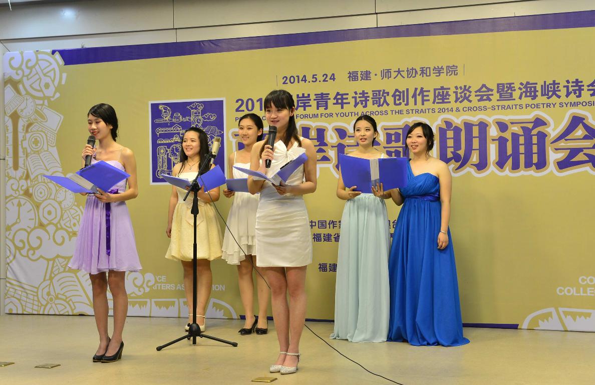 当晚,学院多功能厅诗意浓浓,两岸诗人与青年学子切磋诗艺,吟诵诗作。《爱相随》、《隔夜有雨》、《那只猫不再出现—送给cat》、《诗有时是小麦有时不是》等二十四首诗歌,在协和学子淋漓尽致的深情演绎下格外动人。他们的精彩朗诵获得了在场听众的一致好评,更让诗作者感动。