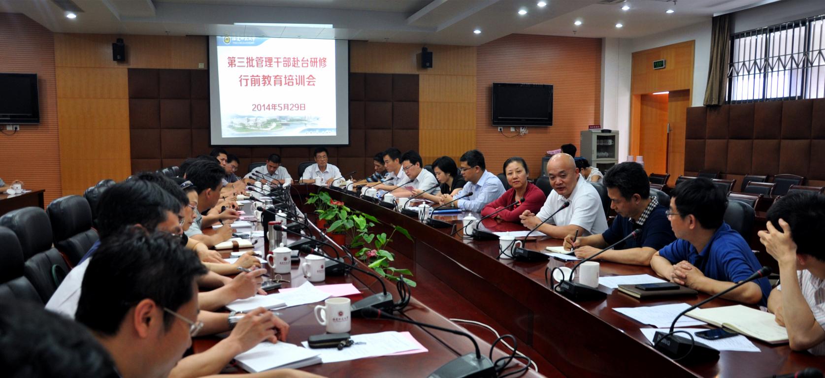 培训会于5月29日下午在旗山校区第十会议室举行。省台办调研员陈锦菱,我校副校长许明,组织部、人事处、港澳台办负责人等出席了会议。全体赴台研修管理干部参加了培训。