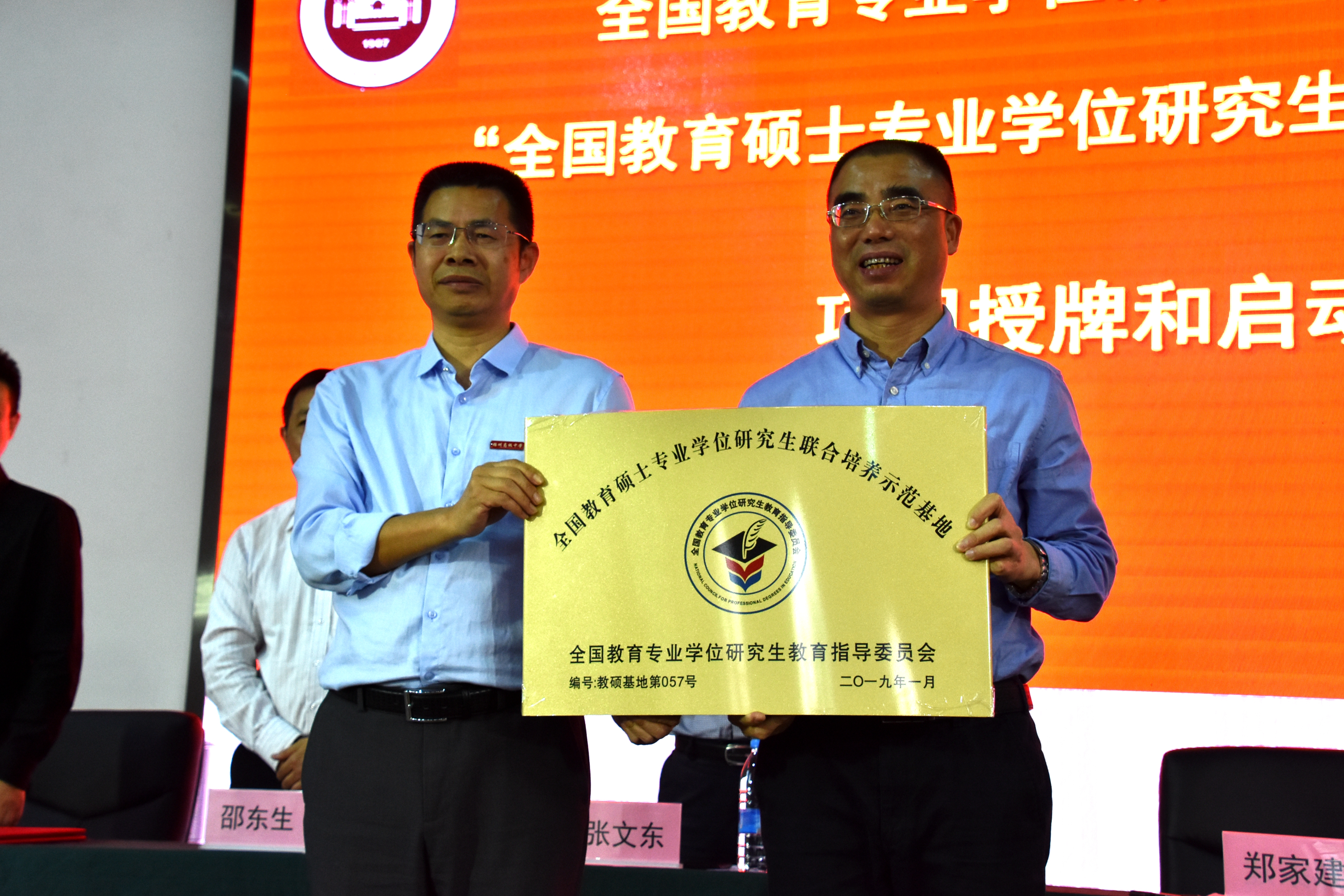 张文东、邵东生分别在致辞中对此次成功获批“全国教育硕士专业学位研究生联合培养示范基地”表示祝贺,对研究生教育和基础教育的发展现状进行了分析,对示范基地今后的建设提出了要求和期望。