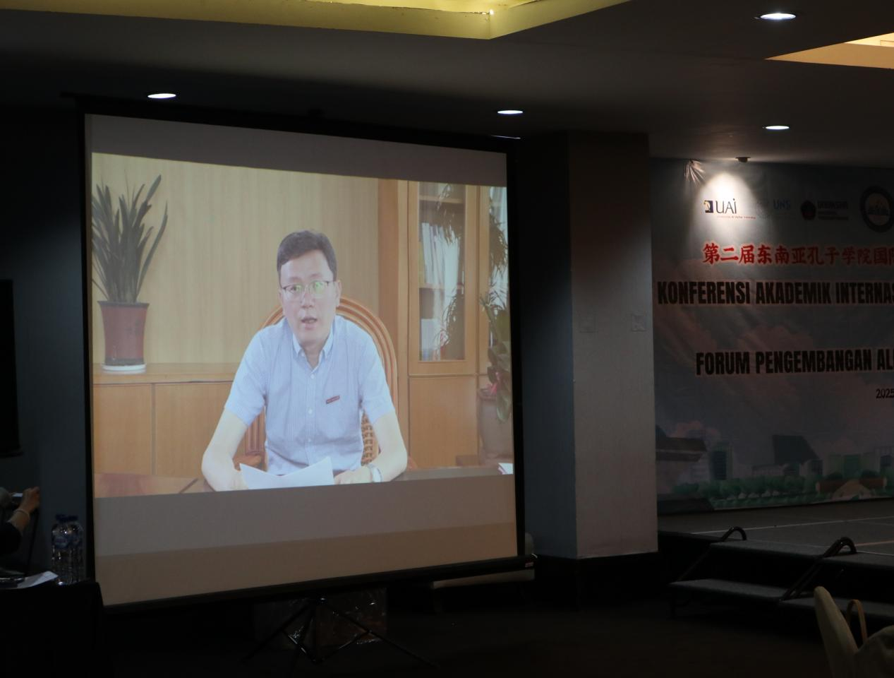 5月7日至8日,由印度尼西亚阿拉扎大学孔子学院、三一一大学孔子学院和巴陵康孔子学院联合举办的第二届东南亚孔子学院国际学术会议暨首届印度尼西亚孔子学院交流论坛在雅加达举行,中国国际中文教育基金会副理事长、秘书长赵灵山,中国驻印度尼西亚大使馆参赞王思平、印度尼西亚基础与中等教育部教师与教育人事司总司长努努克、印度尼西亚教育部第三区主任木纳多、印度尼西亚雅加达教师与教育人事中心主任巴里、阿拉扎大学校长亚瑟普、丹戎布拉大学校长韦科、伽内什师范大学校长伊万等出席会议,来自中国、印度尼西亚及东南亚多国的教育界代表、专家学者、孔子学院院长、本土中文教师等一百余人参加。我校副校长欧阳松应应邀发表视频致辞。