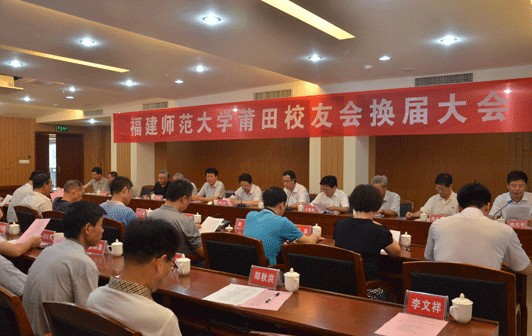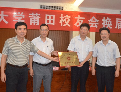8月17日, 我校莆田校友会换届大会在莆田学院举行。校领导黄汉升、王长平、王建南,原党委书记苏玉泰,学校办公室、校友会秘书处负责人出席会议。莆田学院党委书记陈柴生、校长李永苍到会祝贺。莆田市人大常委会原副主任施天水、甘玉连、莆田市人大常委会原副巡视员徐呈虎、莆田学院纪委书记姚志平、副校长黄志源等校友,以及莆田校友会理事会成员代表出席会议。会议由校友、湄洲湾职业技术学院院长彭文宇主持。