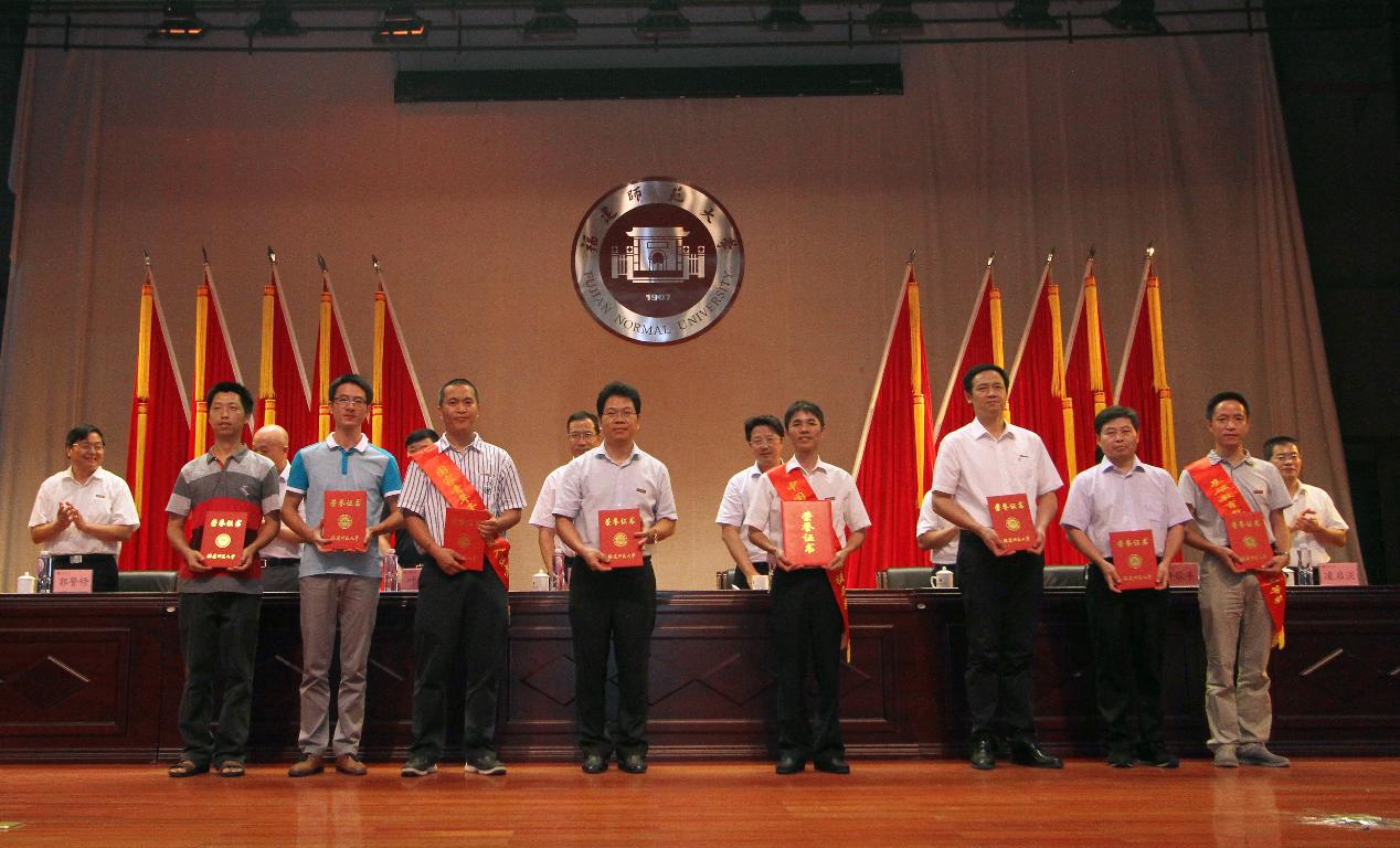校党委叶燊副书记和许明副校长分别宣读了2014年教师节表彰名单。与会领导为全国教育系统先进集体、全国模范教师、“长江学者奖励计划”特聘教授入选者、“中国青年五四奖章”提名奖获得者、国家特支计划百千万工程领军人才、国家“青年千人计划”入选者、国家星空官网app下载入口成果奖获得者、校第六届十佳青年教师、校第二届“我最喜爱的好老师”和校第二届“十佳辅导员”等各级各类先进集体和先进个人颁奖。