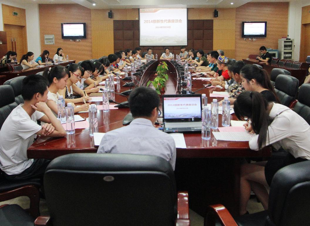 座谈会上,叶燊代表学校对2014级新生的到来表示欢迎。在认真听取同学们的发言后,他首先感谢同学们对学校各项工作的信任、理解和支持,表示学校将继续坚持“师生所望,就是我们的工作所向”的服务理念,不断推动学校的内涵发展,为同学们创造更好的成长成才环境。希望同学们坚定理想信念,努力学习,积极进取,并以主人翁的姿态积极参与到学校的管理服务和发展中来。