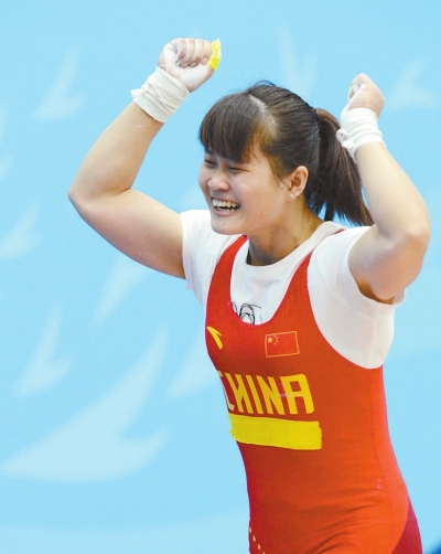 9月23日,2014年仁川亚运会举重比赛继续进行,刚刚在今年从58公斤升级到63公斤的我校体育科学学院2013级学生邓薇,在女子举重63公斤级决赛中,经过激烈的比拼,以259公斤的总成绩获得银牌。 (体育科学学院 赵火平)