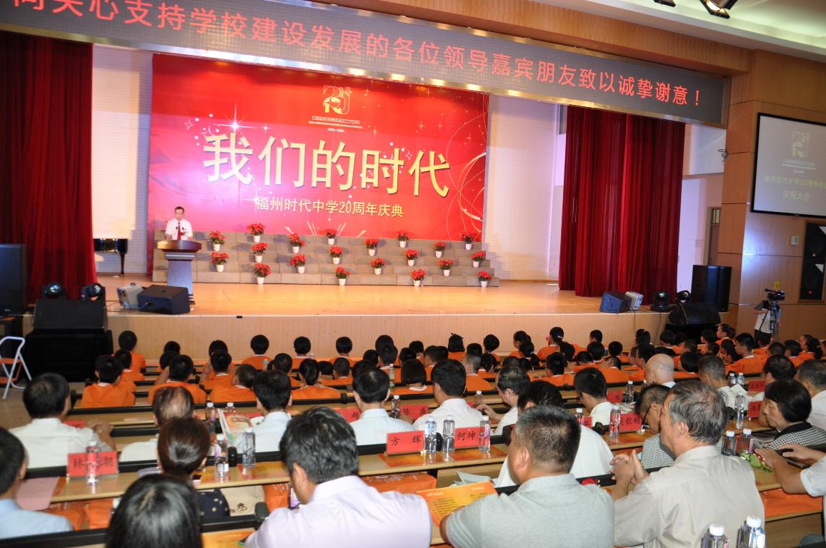 10月2日上午,“福州时代中学建校二十周年庆祝大会”在附中报告厅隆重举行,全国政协常委、福建省政协副主席、农工党福建省委员会主席陈绍军,我校领导王长平、许明,福州市仓山区区长杨新坚、仓山区人大主任张为民、仓山区政协主席余凤玉等领导嘉宾应邀出席了庆祝大会。大会由福州时代中学副校长顾海燕主持。福州时代中学校长、书记赵定国首先致辞,他向莅临庆典活动的各位领导、嘉宾及海内外校友致以热烈的欢迎和诚挚的感谢,并深情介绍了时代中学办学20年来上下求索,铸就辉煌的历程及办学特色。王长平副校长和福州市教育局严星副局长分别发表了热情洋溢的讲话,高度肯定了时代中学20年来为福州民办教育作出的突出贡献,并殷切希望时代中学以20周年校庆活动为契机,加快发展,提升内涵,乘势而上,继续成为引领福州民办教育的一面旗帜。2001届初中校友、擎力重工有限公司总经理、澳门福建总商会副会长林潮先生、在校学生代表李瑶琪同学、2006届初中毕业生林一施同学的家长施小方女士也动情地表达了对母校的感恩与祝福。