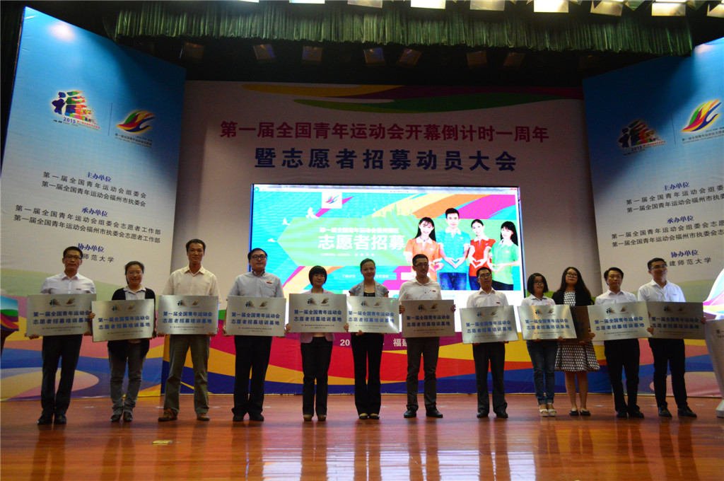 会上首播了第一届全国青年运动会志愿者招募宣传片。与会领导何明华、杨江帆、何静彦、许发荣、叶燊共同组合第一届全国青年运动会志愿者标志,正式启用志愿者报名系统,拉开志愿者招募工作的序幕。我校和福州大学、福建医科大学等15所高校被组委会确定为首批志愿者招募培训基地,杨江帆为受聘高校授牌。会议还启动了“迎接青运会、争当志愿者”暨“共青团员义务星期六”主题活动和青少年新闻报道团成员招募活动。