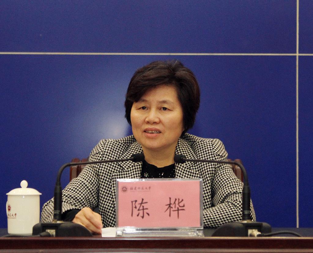陈桦代表省委、省政府,向来自海内外的各位校董表示诚挚欢迎和衷心感谢,充分肯定了董事会成立以来学校工作和董事会取得的显著成绩。她说,董事会成立以来,学校按照习近平总书记在福建工作时提出的“建成富有鲜明特色的教学科研型省属综合性大学”的要求,抓住省部共建机遇,深化综合改革,取得了可喜的成绩,综合实力显著增强。校董队伍不断壮大,合作领域不断扩展,机制日益完善,各位董事大力捐资助学,积极建言献策,以实际行动弘扬了“嘉庚精神”。她要求我校认真学习贯彻习总书记来闽考察重要讲话精神,坚持扎根大地办大学,进一步增强改革意识,加快构建现代大学制度,加强人才培养模式改革,瞄准社会需求及时调整学科专业结构,围绕我省经济结构调整、生态环境保护等开展科研攻关,为经济社会发展提供强有力的人才和科技支持。她希望我校进一步健全机制,充分发挥校董会在凝聚力量、捐资办学、建言献策、交流合作、民主监督方面的作用;希望各位董事继续为学校改革发展献计出力,为学校建设提供支持和帮助。