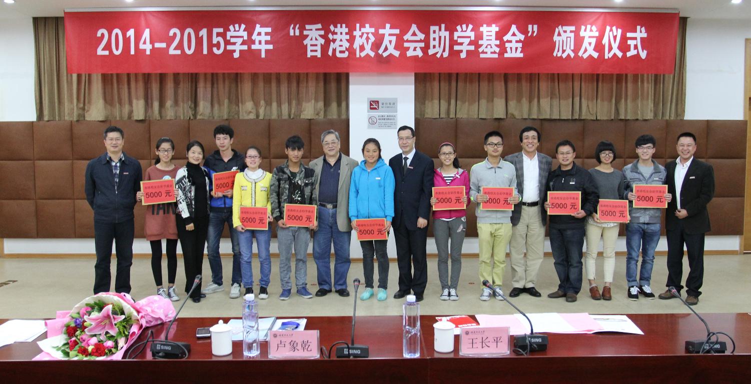 香港校友会情系母校和青年学生,每年资助10位家庭经济困难同学,每位5000元。仪式上,林民盾勉励同学们心怀梦想,面朝阳光,乐观成长,传承大爱,努力成为社会栋梁之才。卢象乾介绍了香港校友会的情况,并鼓励同学们不因贫穷而志短,要勤于学习、参与实践,要敢于有梦、勇于追梦,为实现“中国梦”奉献青春力量。