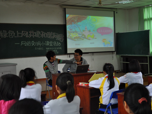 11月21日上午,我校法学院普法小分队先后到福州市象园小学和晋安区第四中心小学,分别围绕“健康绿色上网,共建和谐网络”和“食品安全”的主题,以法制趣味小课堂和情景剧的形式,展开了别开生面的法律宣传活动,告诉小朋友们如何防范网络诈骗等法律知识,增强他们的食品安全意识。福州电视台少儿频道对活动进行了全程录制。