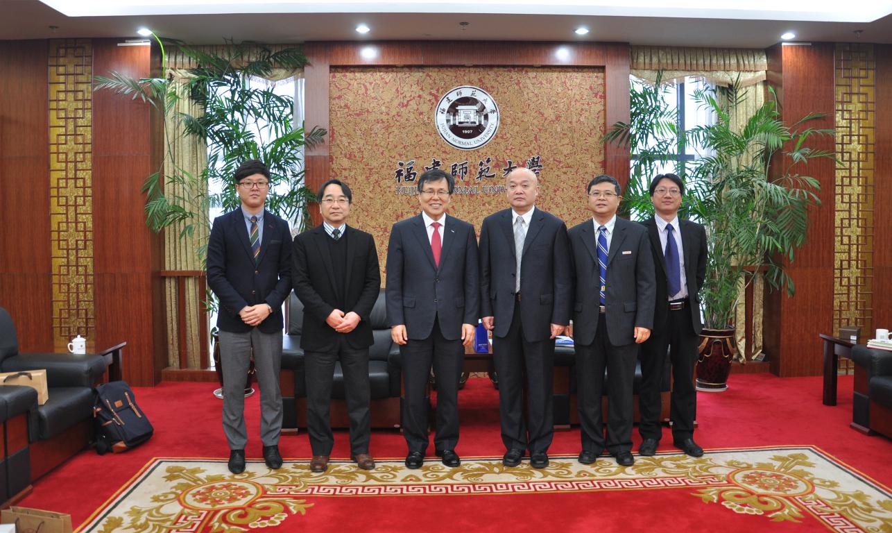 许明向客人们介绍了我校历史沿革、学科建设、校区建设和我校与国(境)外大学的交流情况。他说,两校在学科建设和专业设置等方面有很强的互补性,双方的合作很有潜力,期待能与韩国江原大学开展合作交流。辛承昊表示韩国江原道与福建省是友好省道关系,非常高兴能借此机会访问我校。江原大学目前已有300多名中国留学生,如果与我校开展学生交流活动,也将极大推动中韩两国学生交流。他建议两校在友好协议的框架下,积极推进双方的交流与合作,促进共同发展。随后,双方就高等院校国际化、教师培训和学生交流等相关合作问题进行了讨论。