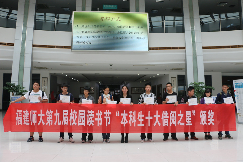 依据学校图书馆借阅系统记录,评选表彰了2014年-2015学年度“本科生十大借阅之星”,来自马克思主义学院的张宜强同学以409册的借阅量荣登个人借阅榜第一名,与文学院的周娟霞等9位同学一同获评“本科生十大借阅之星”。随后,十位获奖代表与师生们围坐在一起,举行“读书与荐书”分享会,分享读书心得,推荐励志成长的好书。