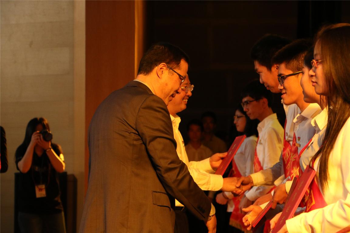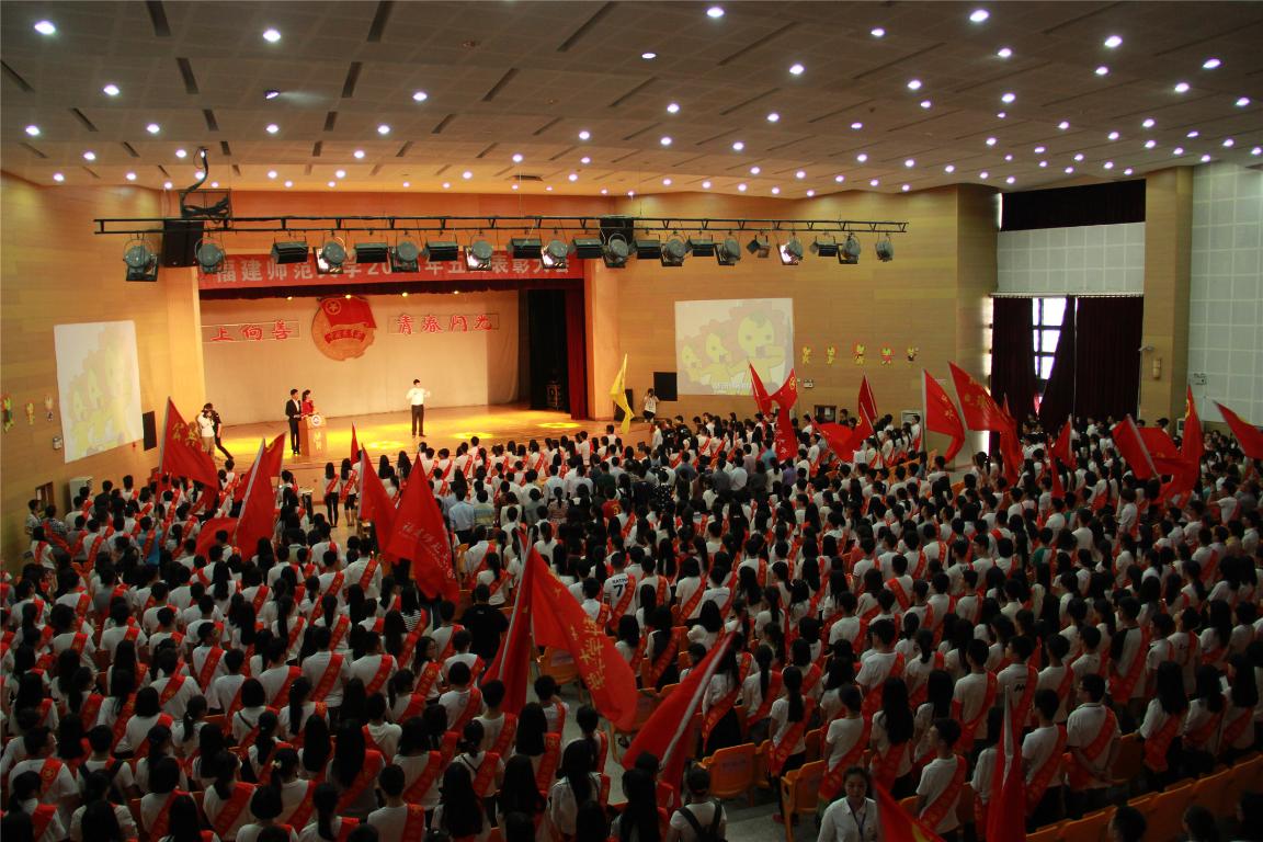 表彰大会在青春激昂的开场舞《筑梦起航》中开幕。校党委黄汉升书记发表热情洋溢的讲话,他代表学校党委向获奖组织和个人表示热烈的祝贺,向长期以来支持青年事业的同志们表示衷心的感谢,向全校广大共青团干部和青年朋友致以亲切的问候。他指出,过去一年学校共青团紧紧围绕“伟大的中国梦”和“美丽的师大梦”的宏伟蓝图,在思想引领、校园文化、科技创新、社会实践等方面取得了一系列突破和成果,特别是“五微五阵地”新媒体工作继续引领全国,福师大小葵系列网络文化产品广获好评,极大提升了学校的知名度和美誉度。他对全校青年学生提出三点希望:一要志存高远,让青春在坚定理想中闪光;二要勤奋学习,让青春在追求卓越中闪光;三要修身立志,让青春在向上向善中闪光。他希望全校各级团学组织围绕学校中心工作,在服务大局中找准新坐标,在推进发展中激发新活力,在服务青年中再创新业绩;希望全校上下进一步形成支持共青团事业发展的良好氛围,关心共青团干部的成长,为青年成长成才创造更有利的条件。讲话结束后,黄汉升与在场师生一起自拍合影,现场气氛十分热烈。