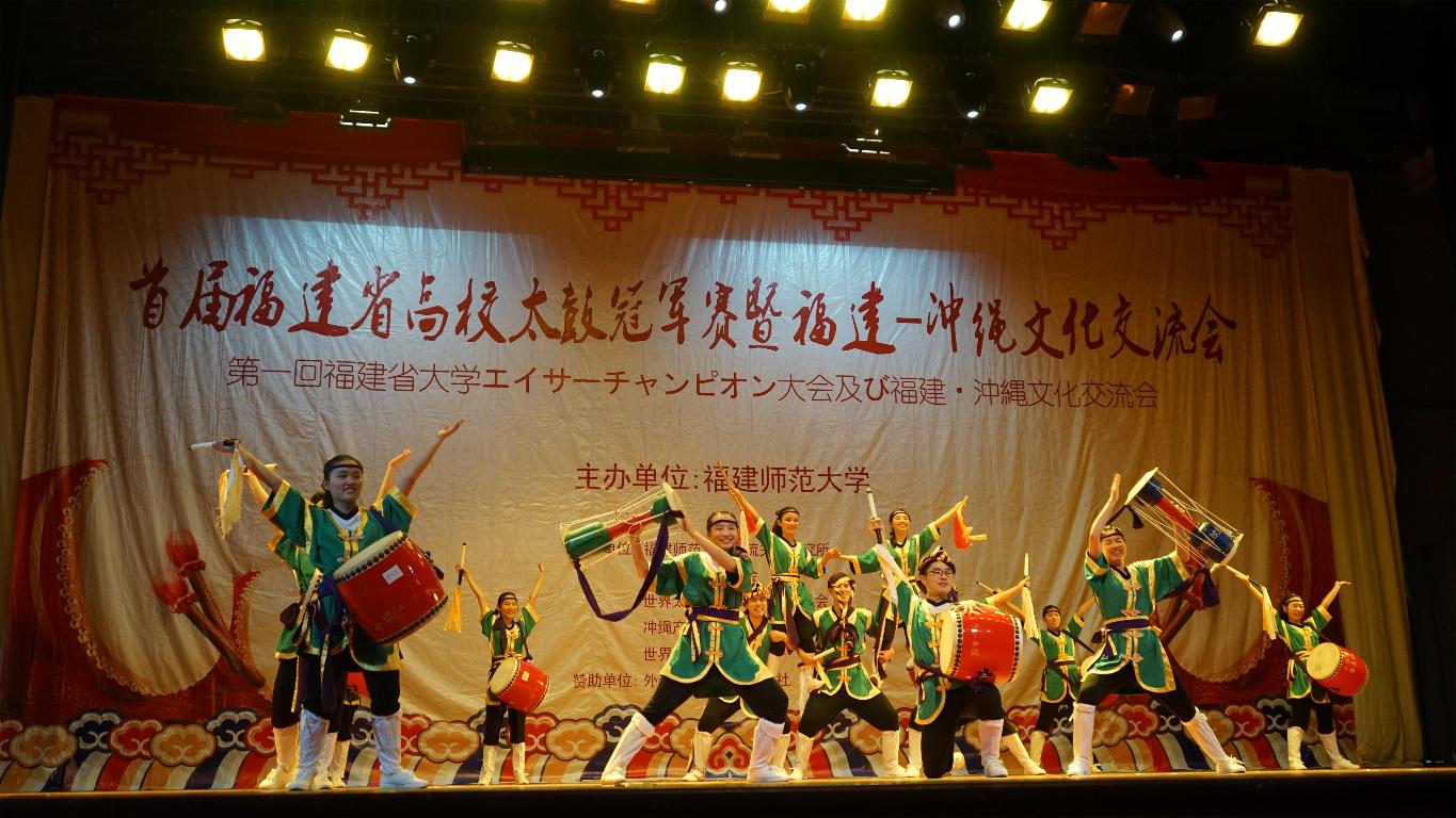 比赛中,我校闽琉太鼓队巧妙地将福建传统乐器钱箭和狼串融入太鼓表演,展现两地文化交融的独特魅力,赢得阵阵喝彩,最终夺得首魁,并将受邀参加今年9月在冲绳那霸举行的世界太鼓比赛。