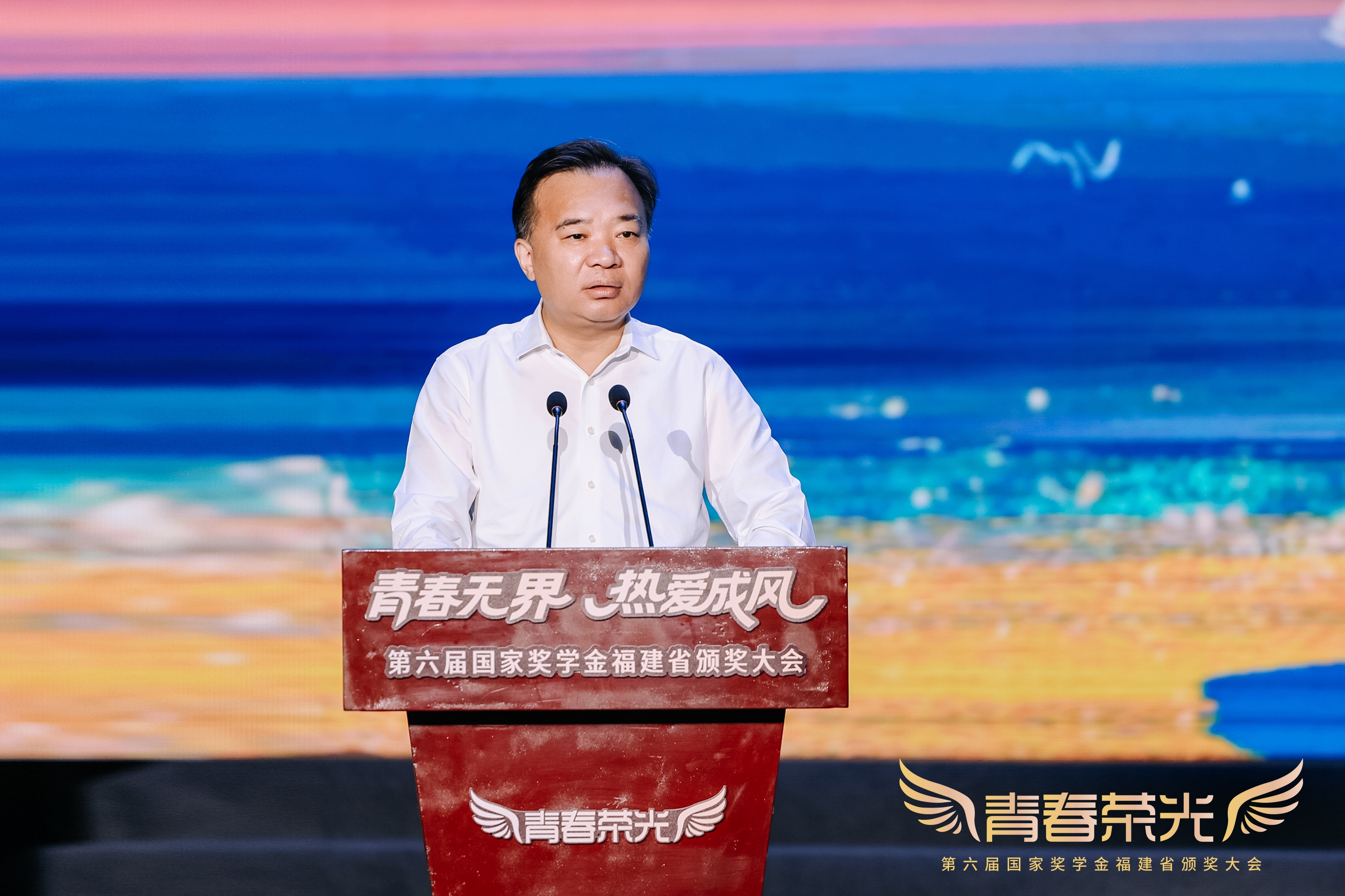 会上,校党委书记潘玉腾为国家励志奖学金获奖代表颁奖;马克思主义学院硕士研究生苏弘戬、文学院本科生陈亦立作为国家奖学金获奖代表上台领奖;传播学院学生带来音诗画朗诵《写给未来的你》,通过跨越时空的壮志回响和接续奋进的青春作答,生动展现一脉相承的中国青年、继往开来的八闽学子不负时代使命的担当。