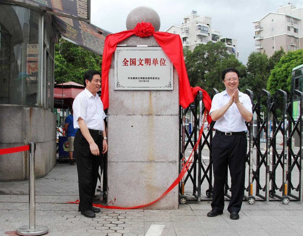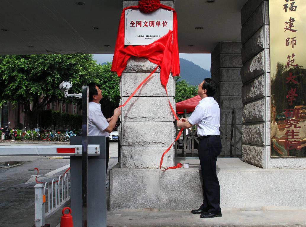 大会召开前,我校分别在仓山校区、旗山校区大门口,简朴热烈地举行了“全国文明单位”揭牌仪式。