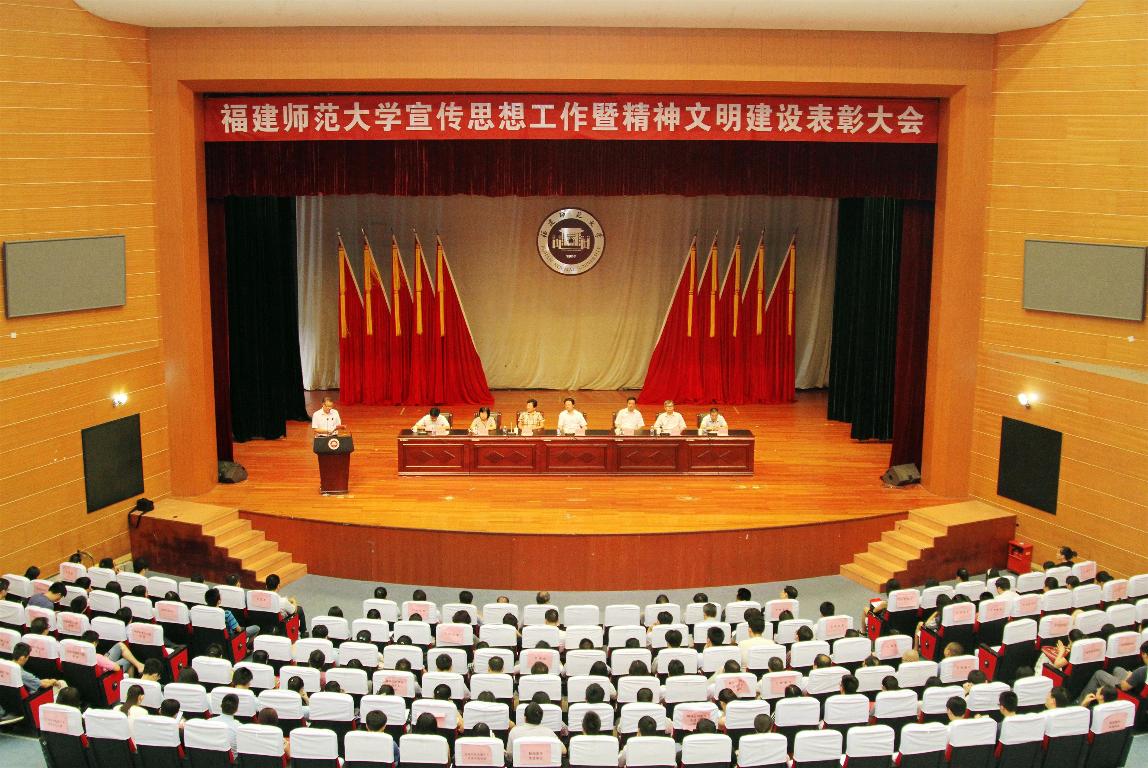 会上,黄汉升书记作重要讲话。他指出,我校被授予“全国文明单位”荣誉称号,实现了几代师大人的“文明梦”,标志着我校精神文明建设进入新的阶段。过去几年,学校精神文明建设取得了明显成效。一是扎实推进思想理论建设,社会主义核心价值观深入人心;二是不断深化创建工作和活动,校园文明程度持续提升;三是着力加强校园文化建设,师生文化需求得到有效满足;四是大力推进服务型校园建设,师生获得感明显增强。多年的工作实践为我们积累了宝贵的经验。一是必须坚持围绕中心、服务大局;二是必须坚持以人为本、立德树人;三是必须坚持改革创新、重在建设;四是必须坚持全员参与、锲而不舍。黄汉升强调,精神文明建设永远在路上,要清醒地看到工作中的困难、问题和不足,采取有效措施,切实加以解决,以更高的标准和要求深入推进文明创建工作,不断巩固和发展精神文明建设成果。