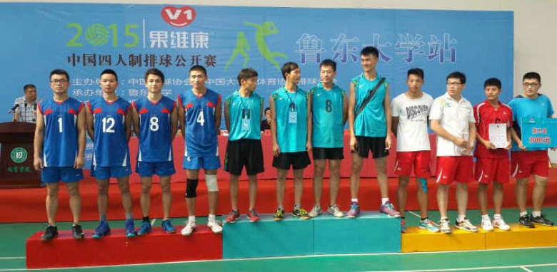 公开赛于7月10日至14日在山东烟台鲁东大学举行,由中国排球协会、中国大学生体育协会排球分会主办,来自全国高校体育教育专业组8支代表队和业余组22支代表队共240余人参加比赛。 我校派出体育科学学院领队黄子宜老师、教练许建政老师和蔡宗森、纪增长、柯永杰、邱荣水等四位同学组成的代表队参加本次比赛。经过激烈角逐,我校代表队顺利进入决赛,并获得亚军。 (体育科学学院 陈乃团)