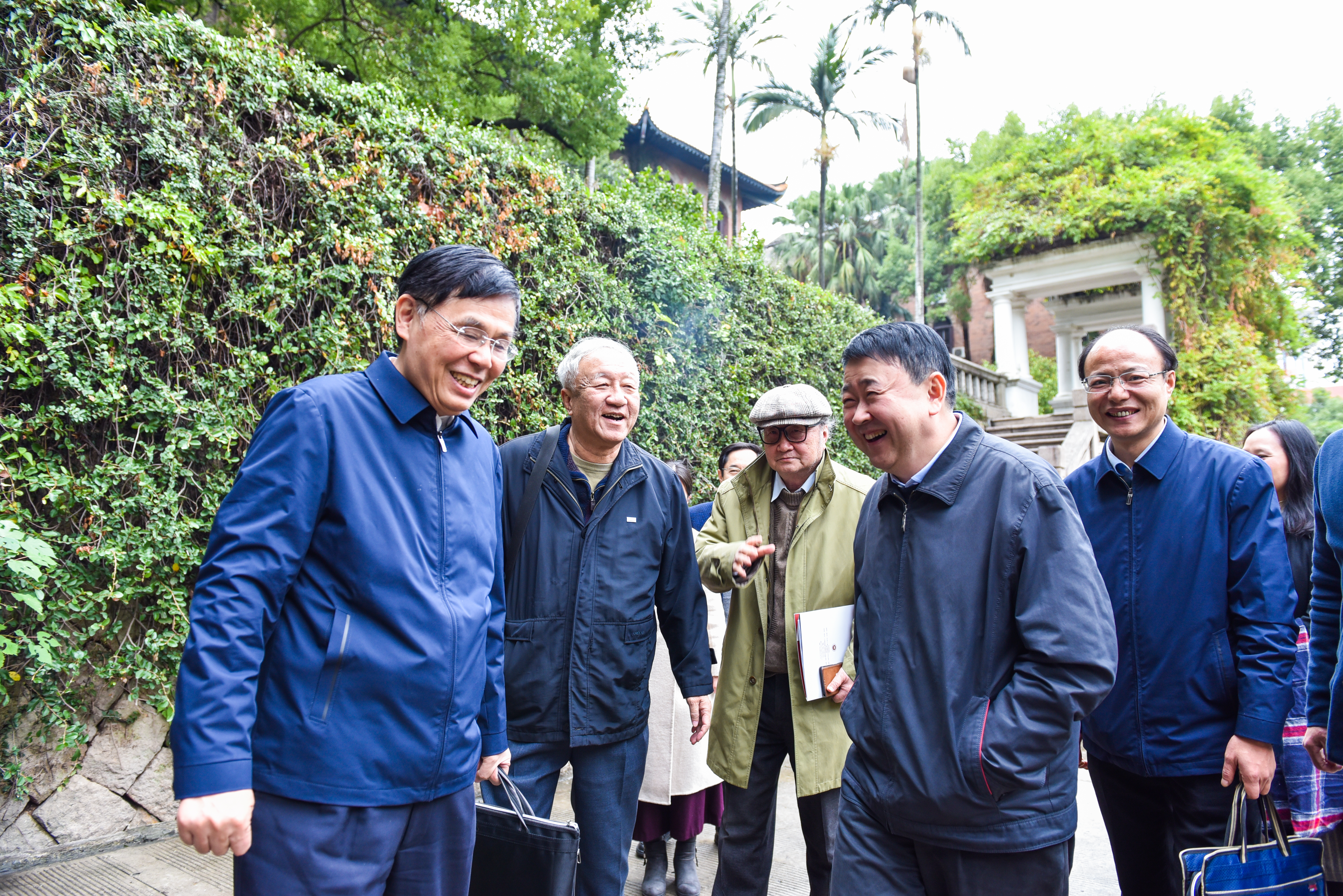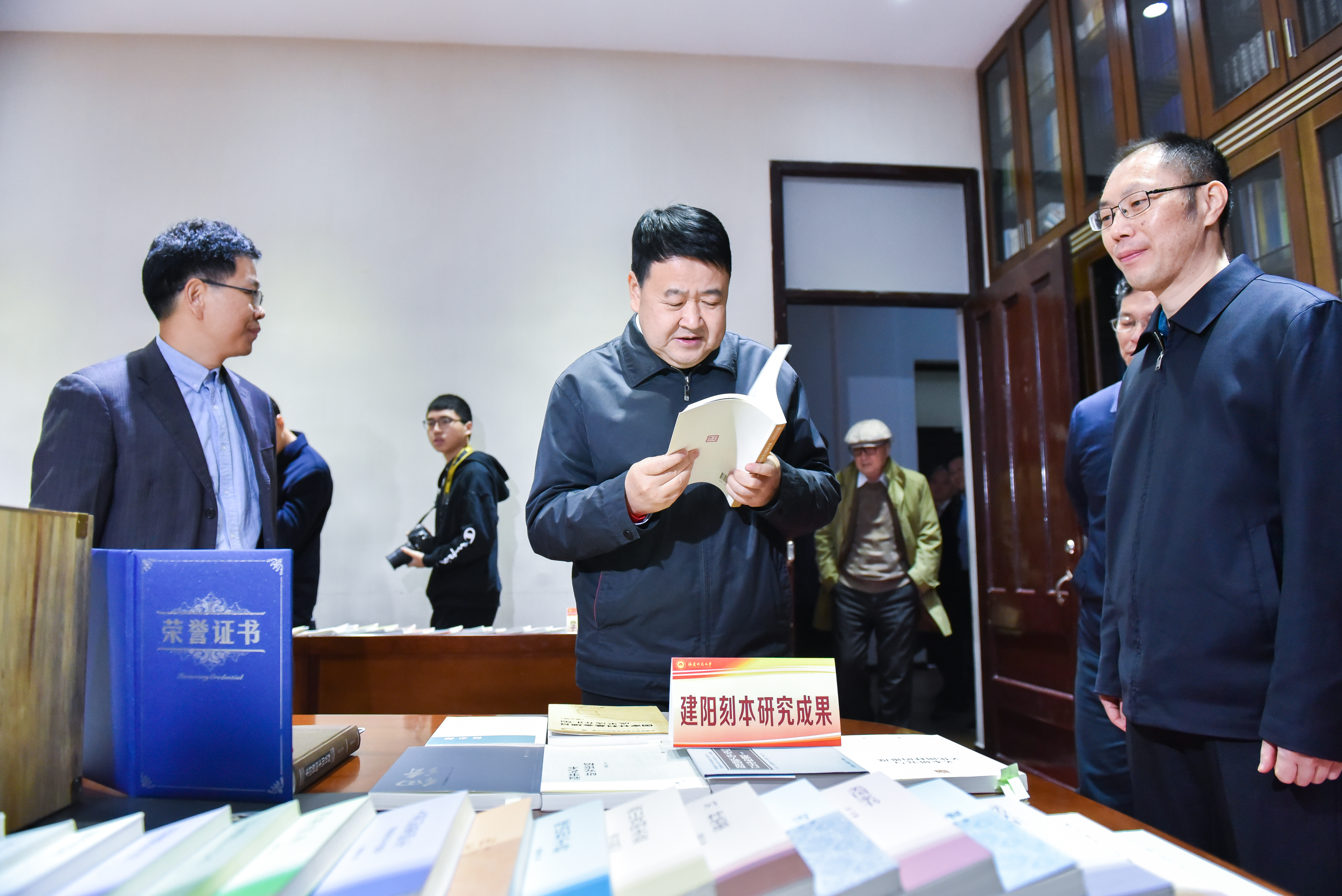 在传播学院,梁建勇等领导共同为福建省电影剧本创作研究中心授牌、为星空下载游戏推荐安卓融媒体应用研发中心和全景演播实验室揭牌,考察了星雨剧场等教学场所。在文学院,梁建勇一行走访了原华南女子文理学院办学旧址,看望了文学院孙绍振教授,观看了两岸合编高中语文教材中心,了解了文学院入台出版工程及文学创作出版工程成果、建阳刻本研究成果、闽台区域研究中心成果等。