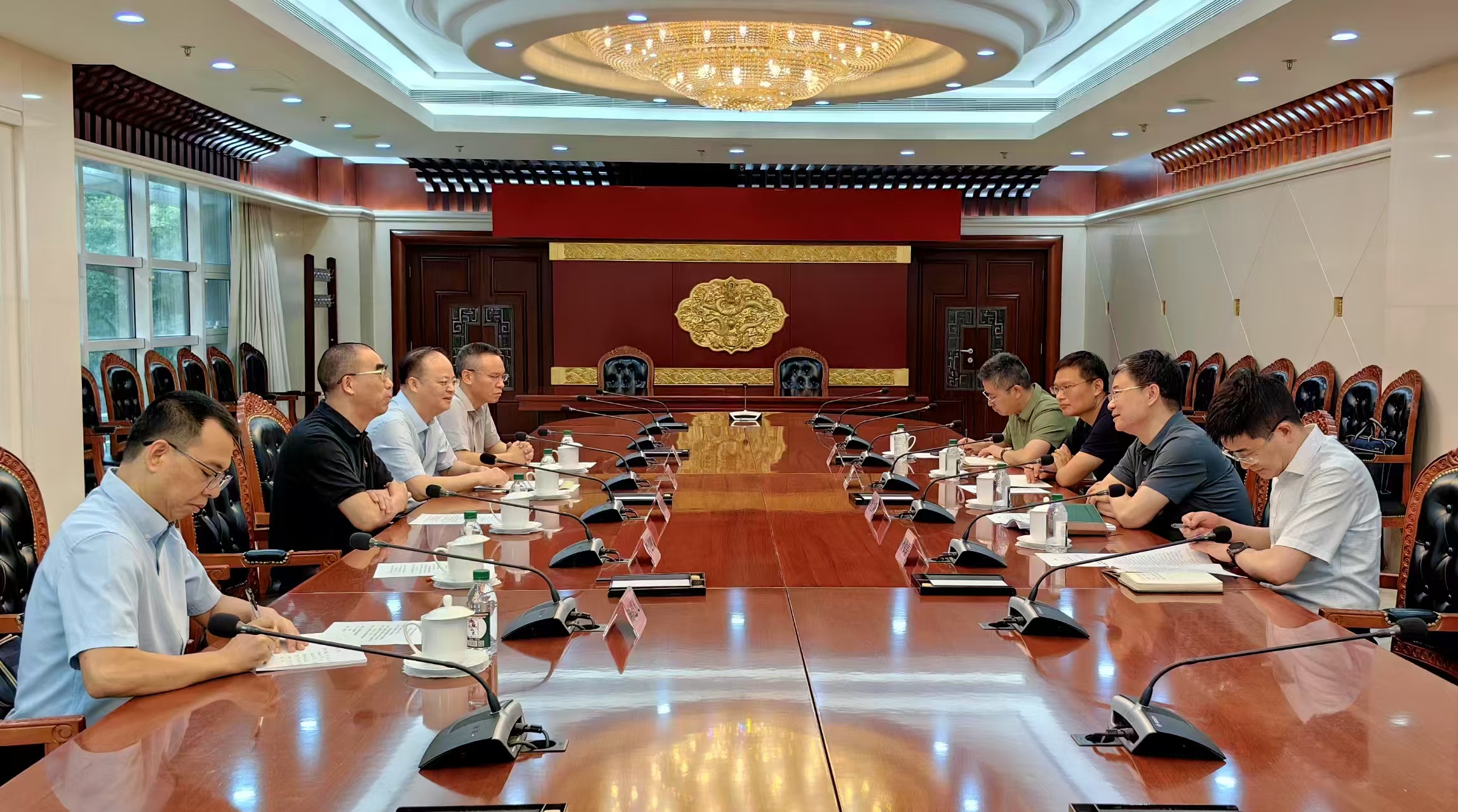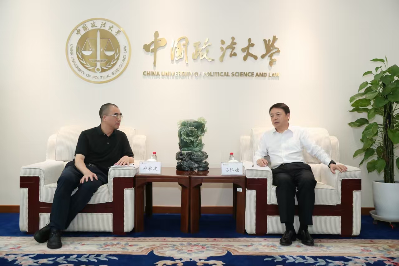 在中国政法大学,郑家建一行与国务院学位委员会纪检监察学学科评议组召集人、中国政法大学校长马怀德进行了座谈交流,中国政法大学党委副书记、纪委书记刚文哲,党政办公室(政策研究室)副主任李彦鹏,教务处副处长、招生办公室主任于瑞辰,纪检监察学院副院长施鹏鹏等参加座谈交流。郑家建介绍了学校纪检监察学院独立设置以来的建设情况,向马怀德校长和中国政法大学对学校纪检监察学科建设的支持帮助表示感谢,对中国政法大学近年来取得的显著办学成就表示祝贺,表示学校将充分发挥综合性大学的学科优势和区域文化资源优势,准确把握纪检监察“明体达用、体用贯通”的特征,努力推动纪检监察学科内涵式、特色化发展。希望中国政法大学继续给予指导和支持,开展更加深入的交流合作,共同为构建中国特色纪检监察学自主知识体系贡献力量。马怀德对郑家建一行的到来表示热烈欢迎,介绍了中国政法大学办学情况,对我校在省内率先开展纪检监察学科建设的做法和成效表示赞赏,认为推动纪检监察学科高质量发展,要围绕学科四个二级方向建强学科队伍,加强理论探索和学术研究,构建高水平人才培养体系,拓展学术交流与合作,积极服务经济社会发展。他表示,纪检监察学科建设不是一家之事,而是共同的事业,希望今后两校在智库建设、社会服务、新兴学科与交叉学科建设等方面加强交流、合作共赢,共同为建设中国特色、中国风格、中国气派的纪检监察学科贡献力量。