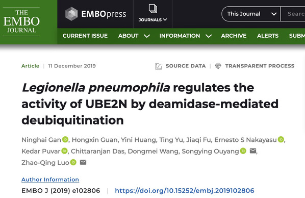 近日,生命科学学院欧阳松应课题组与美国普渡大学罗招庆课题组联合在国际顶级期刊《The EMBO Journal》上发表了嗜肺军团菌(Legionellapneumophila)效应因子MvcA的相关研究成果,这是该课题组继今年7月份在《Nature》主刊上发表军团菌相关研究成果之后的又一重大进展。