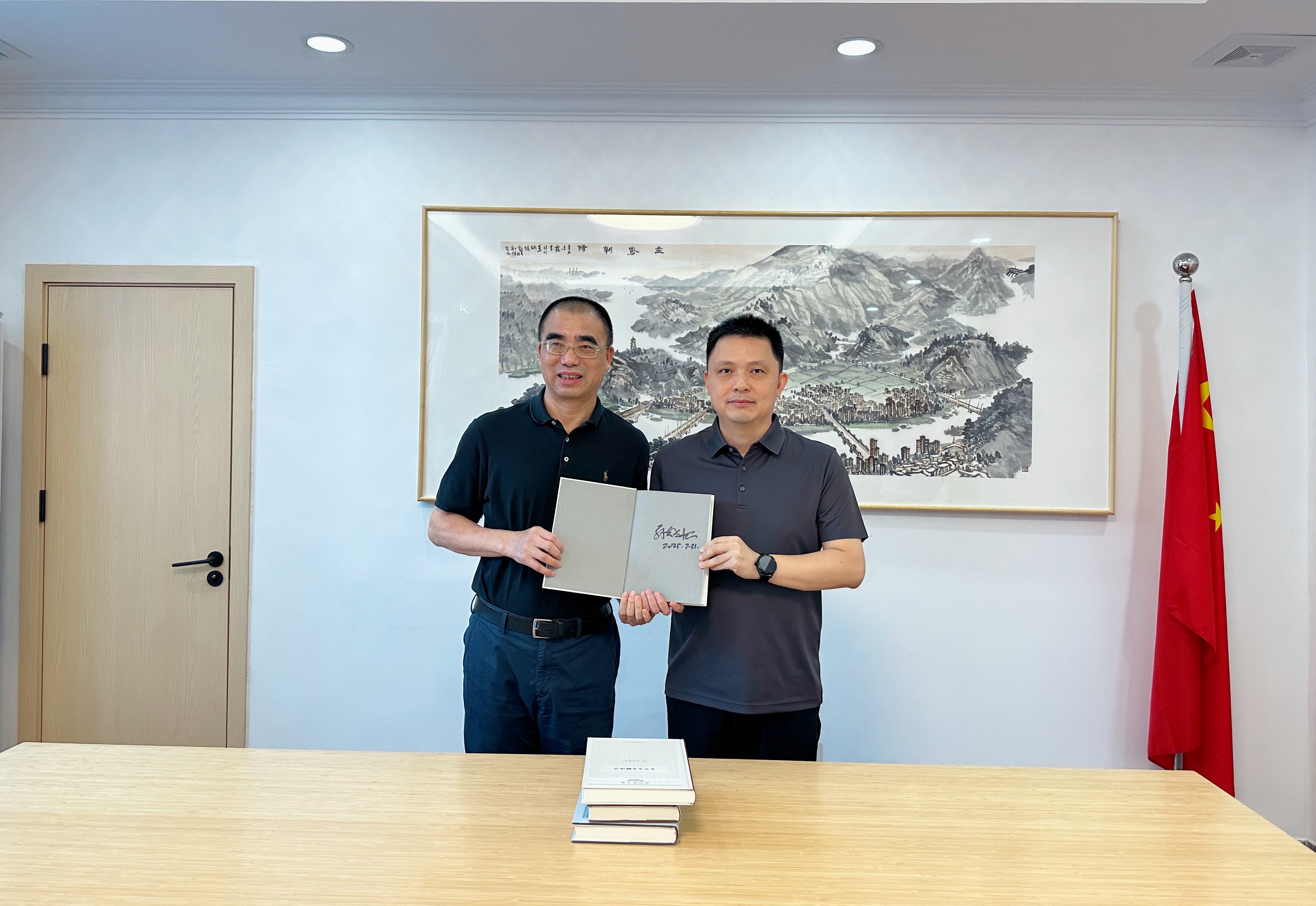 随后,双方与会人员围绕密切校地合作等事宜进行了深入交流。最后,郑家建向校友赠送了《孙绍振文集》《透亮的纸窗》等书籍,勉励校友扎根基层、服务社会,继续为地方建设和母校发展贡献力量。
